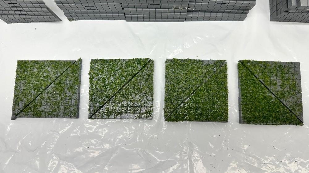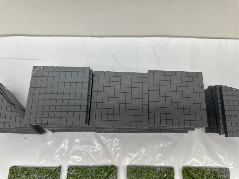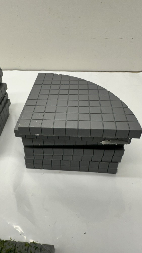 The LEMAX Brick Walkway set includes gray 3"x3" square tiles, 1/4 circle pieces, quarter circles and grass tiles designed for a Christmas village display. Made of plastic, these village accessories are suitable for creating a unique pathway in your holiday village scene. The versatile shapes and color of the tiles make them suitable for all occasions, providing a realistic touch to your miniature village setting. 8- half square 8- qtr circles 37- 3x3” 8- grass covered half squares