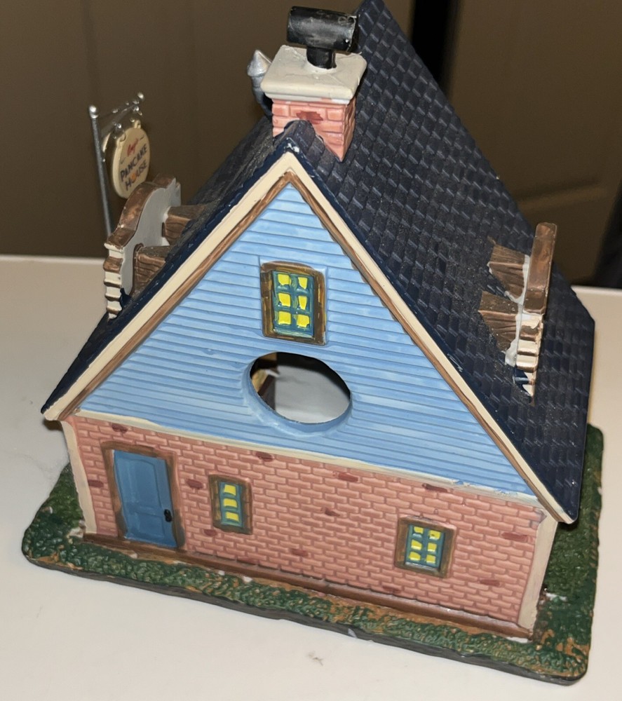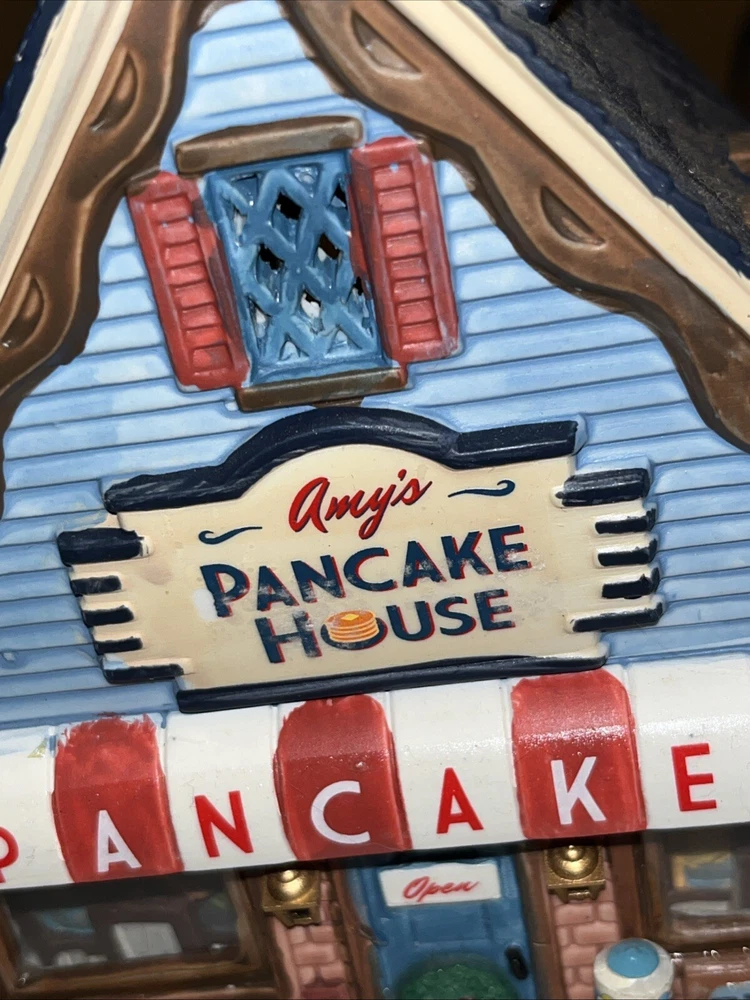 Very Minor flaw on store sign see pics. This product is a collectible porcelain house from the Lemax Signature Collection. It features Amy's Pancake House with intricate details and multicolor design. The house is illuminated and retired, adding to its charm. It was manufactured in 2014 and is an original piece. The house weighs 2 lbs and comes in its original packaging box.