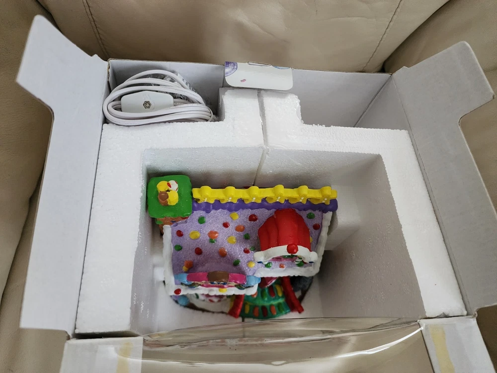 LEMAX Sugar ' Spice 2005 The Cocoa Cup Cafe porcelain Lighted House W Box. Frosted cookies like colors. Measures around 6+ inches tall and long. Light bulb insert on the bottom design. Lights working. Turn knob switch. Old stock new, open for pictures. Great vintage decorative display for home and any other settings. Vintage clean and intact. Sells as is. The original box has gentle ware. Preowned vintage item.