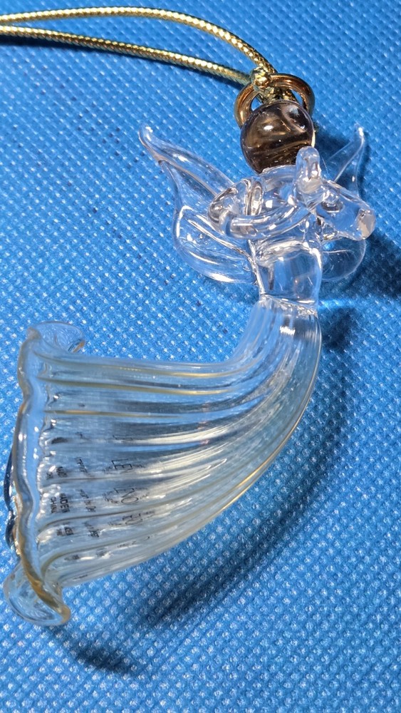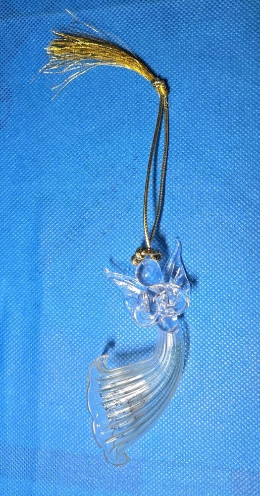 This LENOX Blown Glass Angel Ornament is a beautiful addition to holiday decor, featuring a clear hand-blown glass design of a praying angel. Measuring 3 inches in size, this delicate ornament is part of the Angel collection and is perfect for adding a touch of elegance to any Christmas tree. The ornamental piece is highly decorative and embodies a holiday theme, making it a charming collectible for festive occasions.
