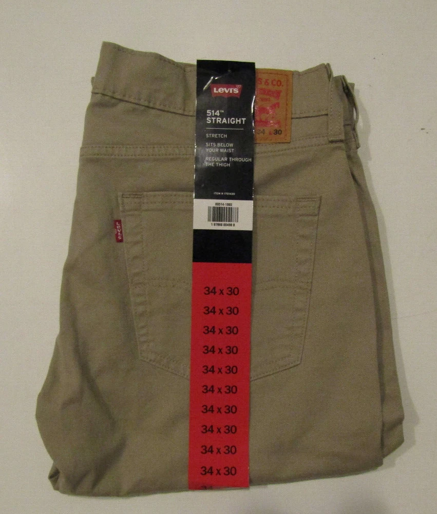 These mens pants are New with Tags! **A stock photo from our inventory has been used to save time. You will get the item pictured in the size stated in the listing!!** LEVIS Made by Levis, this pair of pants is a great find! They are a Khaki Tan color! They are the very popular 514 style with a Straight fit. They sit below the waist with a zipper fly and have a regular fit through the thigh and added stretch for the best fit!! They have 2 pockets in the front with a coin pocket on the right and 2 back pockets. Made of 98% Cotton and 2% Elastane! Size: 38 Inseam: 34 " I do my very best to give accurate measurements. If you have any questions on the measurements, or anything else, please ask! Shipping to the United States is FREE !! This includes FREE delivery confirmation in the United States Check out my other items because I will always combine shipping! Be sure to add me to your favorites list ! Please submit payment in 7 days of the end of this auction. If payment hasn't been received and contact has not been made in those 7 days, eBay will be notified and negative feedback left. If you have a question, please ask prior to bidding because I am happy to answer questions you have! If you are an International bidder, any and all customs charges are the sole responsibility of the buyer and the seller assumes this is understood upon purchase. Thank you and have a great day! Bin DS Box
