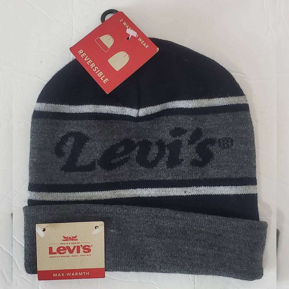 LEVI'S ORIGINAL MEN'S BEANIE HAT BLACK REVERSIBLE MAX-WARMTH Condition: New with tags: A brand-new, unused, and unworn item (including handmade items) in the original Pattern: Striped Character: Max Occasion: winter Size: onesize Color: Black Material: Acrylic Fabric Type: Knit Vintage: No Brand: Levi's Size Type: Regular Department: Men Model: BEANIE HATS Style: Beanie Theme: logo levis Features: Reversible Country/Region of Manufacture: China Season: Fall, Winter Character Family: LEVIS UPC: 026217668697