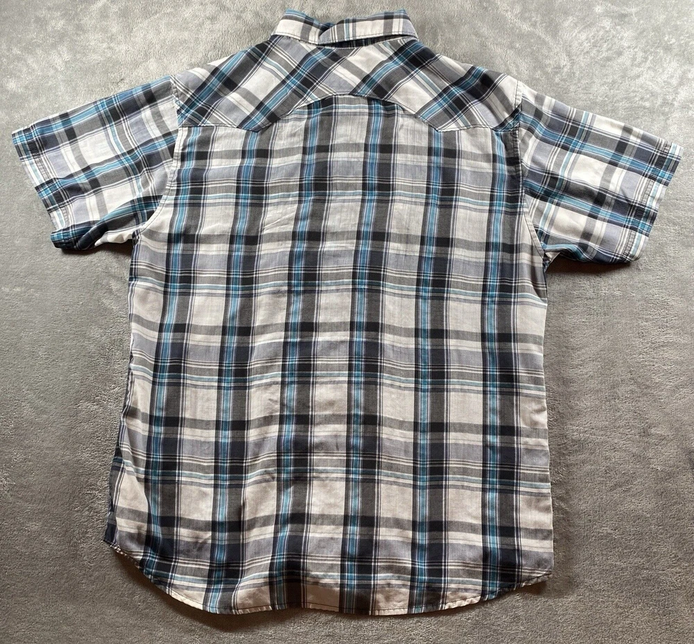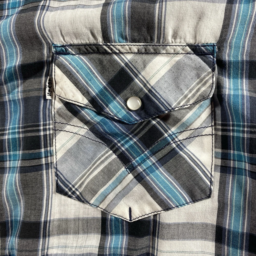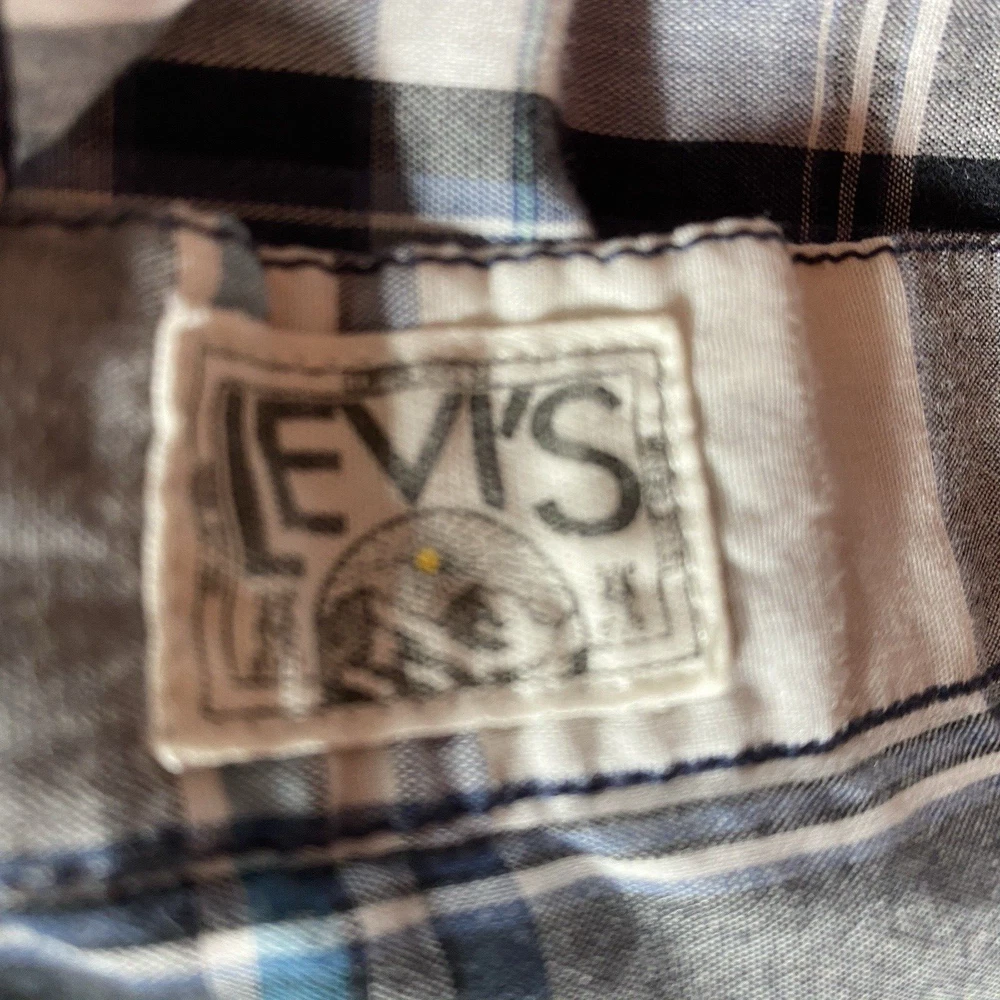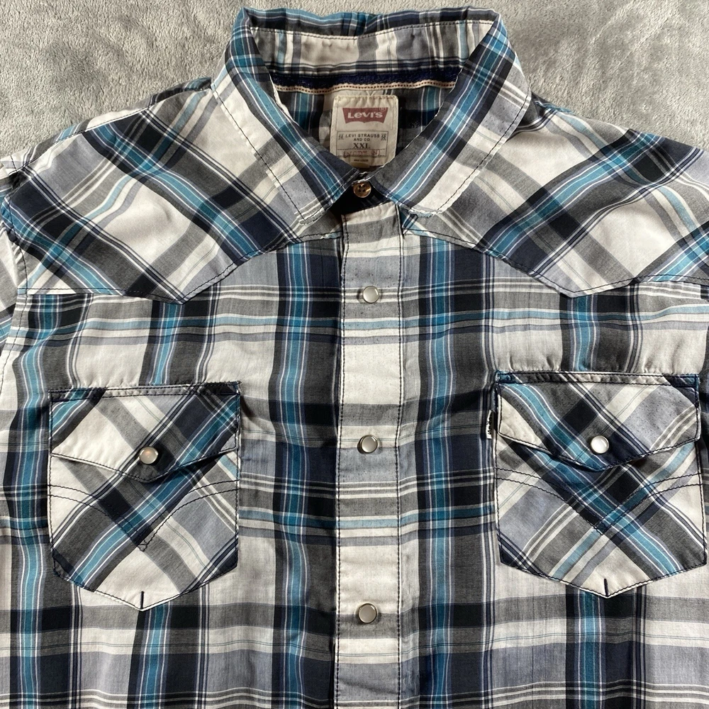 LEVIS Pearl Snap Plaid Shirt Mens XXL 2XL Blue S/S Pocket Country Western Rodeo See photos for the actual item available. Feel free to contact me with any questions. This Levi's plaid shirt is a must-have for any fashion-savvy man. With its blue and multicolor pattern, it's perfect for a variety of occasions, including travel, parties, workwear, and casual outings. The shirt features a spread collar, short sleeves, and pearl snap buttons with yoke accents. It also has flap pockets for added convenience. Made from a blend of polyester and cotton, this shirt is lightweight, breathable, and easy to care for, making it a great choice for all seasons. Whether you're going for a classic, retro, or modern look, this Levi's shirt is versatile enough to match any style. So why wait? Add this shirt to your wardrobe today and make a statement wherever you go. Shop our store with confidence as we offer 30-day returns on all purchases. Additionally you can save money by making multiple purchases to take advantage of our discount shipping policy. You will pay the highest shipping cost for a single item in your cart and $3 for each additional item.