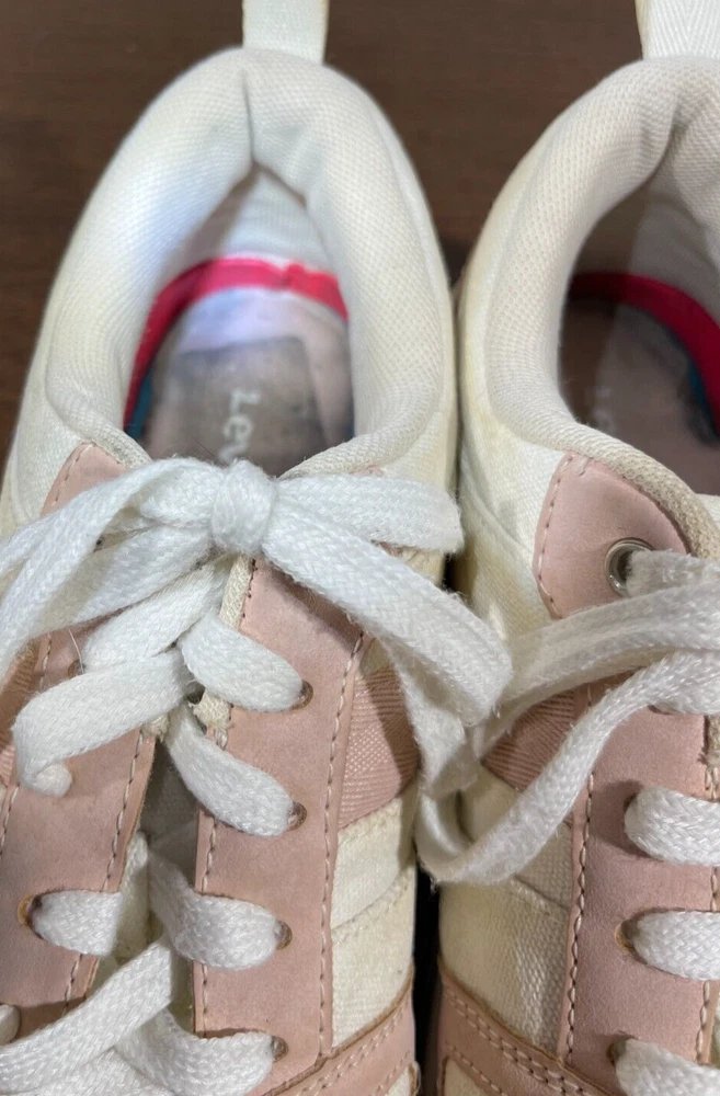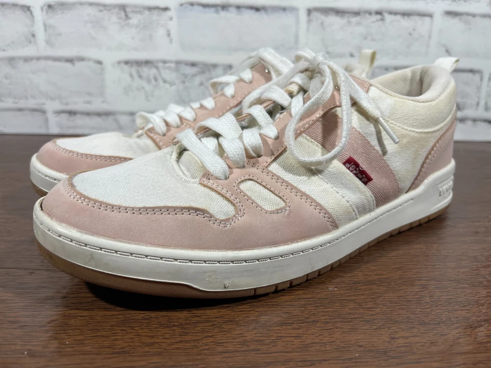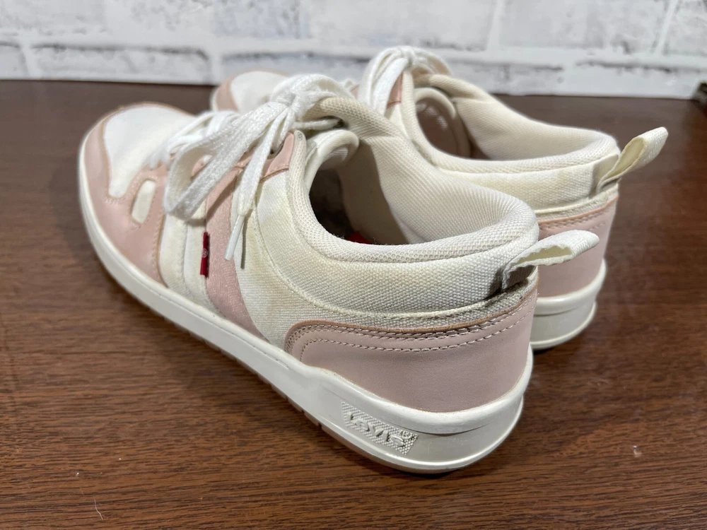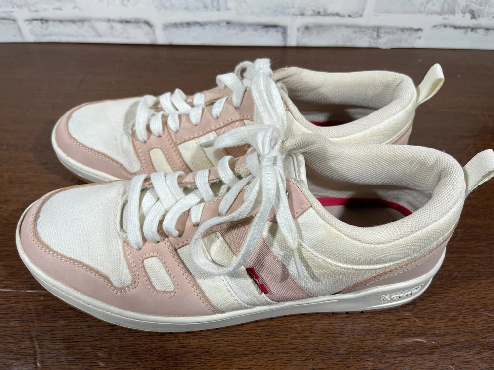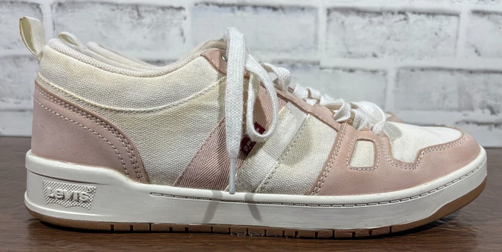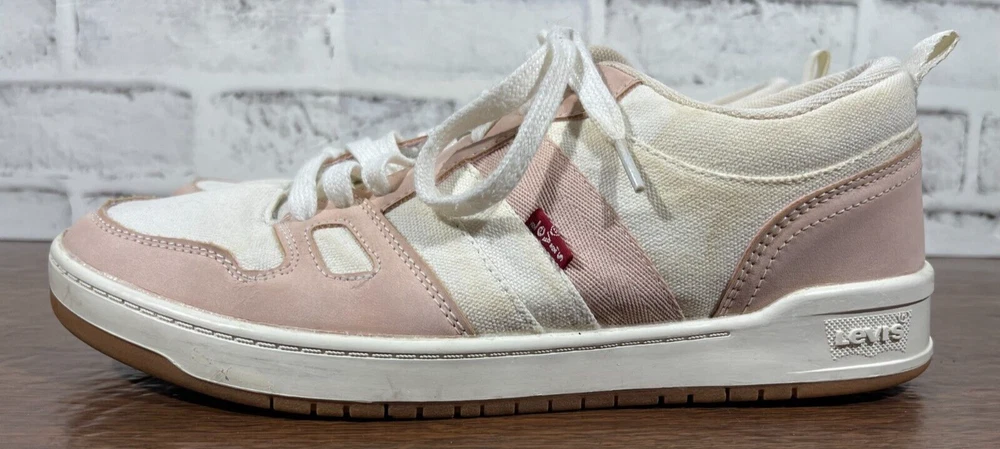 These are Levi's Women's Low Top Fashion Sneakers in a size 10, featuring a dusty pink and white colorblock design. The sneakers are made of canvas with lace-up closure and rubber outsole. They offer cushioned comfort, adjustable fit, and are suitable for activities like tennis, walking, and school. This colorful sneaker is perfect for casual or activewear in all seasons. Good preowned condition with a bit of sole wear, insole wear, and staining as pictured. Please see all photos. For clothing specifically, see photos for all measurements and/or any issues if applicable. Pay close attention to the measurements as the size of the garment may quite possibly be different than the actual measurement(s) due to washing, shrinkage, or stretching as these are used clothes. The size in the title is the size on the tag of the garment. See photos for measurements of actual measurements as they may differ. ALWAYS CHECK THE MEASUREMENTS IN THE PHOTOS. This will remove any questions on measurements as well as always cover the possibility of human error in the listing(s) in the case of a typo or oversight. All clothing and shoes have been washed/cleaned, and comes from a smoke free environment. If shoe trees appear in the photos, they are for photography purposes only to illustrate how the shoes look filled out, and are not included. I am available for questions. I accept or negotiate reasonable offers. Have an amazing day. Thank you.