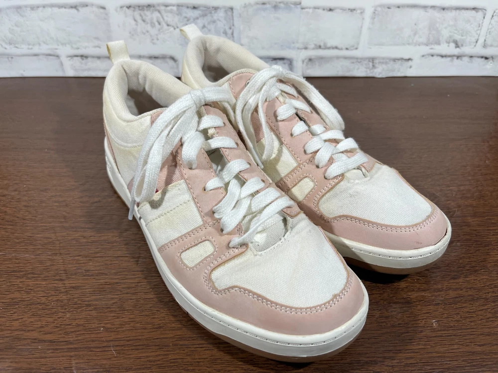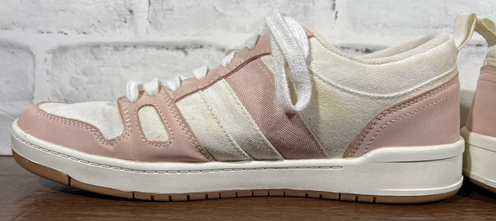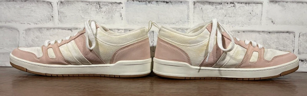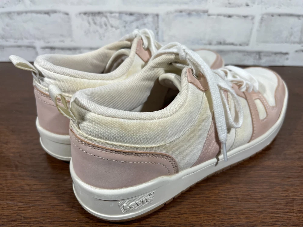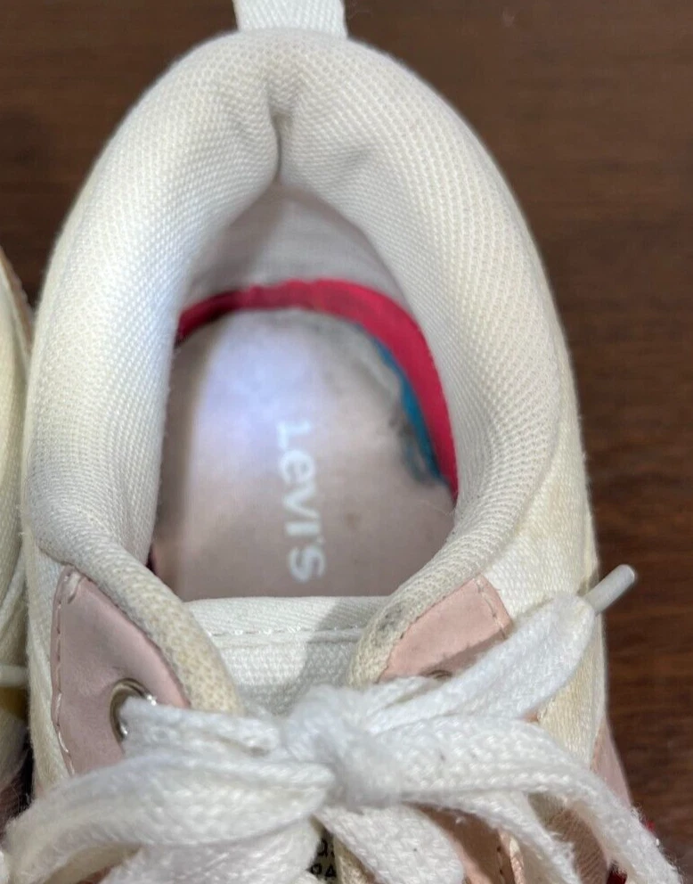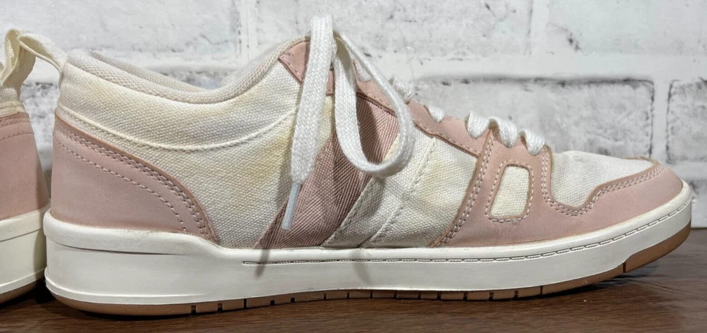 These are Levi's Women's Low Top Fashion Sneakers in a size 10, featuring a dusty pink and white colorblock design. The sneakers are made of canvas with lace-up closure and rubber outsole. They offer cushioned comfort, adjustable fit, and are suitable for activities like tennis, walking, and school. This colorful sneaker is perfect for casual or activewear in all seasons. Good preowned condition with a bit of sole wear, insole wear, and staining as pictured. Please see all photos. For clothing specifically, see photos for all measurements and/or any issues if applicable. Pay close attention to the measurements as the size of the garment may quite possibly be different than the actual measurement(s) due to washing, shrinkage, or stretching as these are used clothes. The size in the title is the size on the tag of the garment. See photos for measurements of actual measurements as they may differ. ALWAYS CHECK THE MEASUREMENTS IN THE PHOTOS. This will remove any questions on measurements as well as always cover the possibility of human error in the listing(s) in the case of a typo or oversight. All clothing and shoes have been washed/cleaned, and comes from a smoke free environment. If shoe trees appear in the photos, they are for photography purposes only to illustrate how the shoes look filled out, and are not included. I am available for questions. I accept or negotiate reasonable offers. Have an amazing day. Thank you.