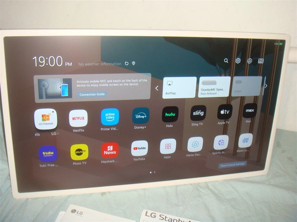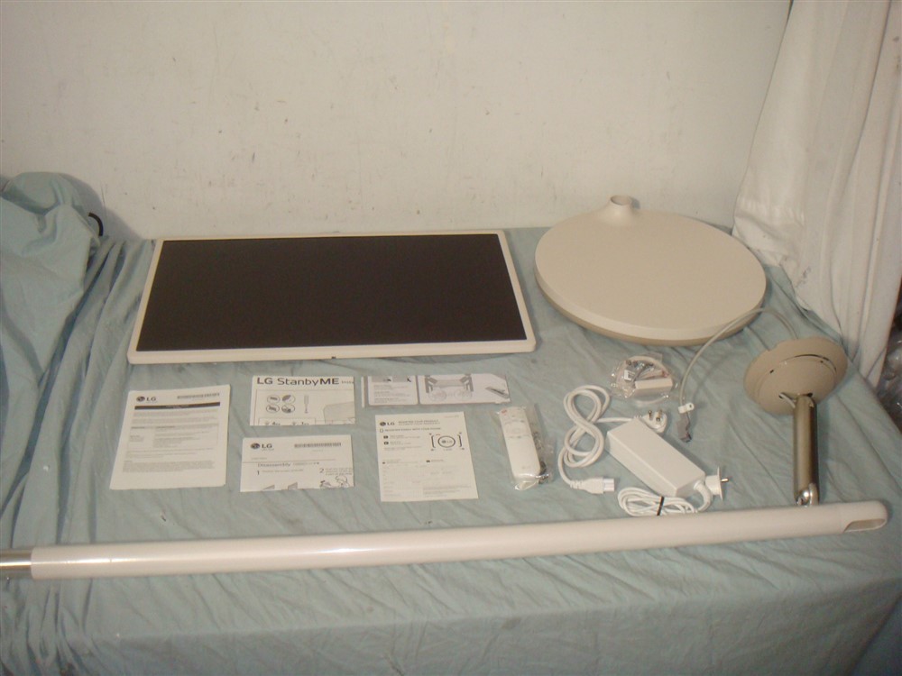 LG STANDBYME 27" LED HD SMART TOUCSHCREEN MONITOR W SWIVEL STAND 27ART10AKPL You are bidding on ONE BRAND NEW, OPEN BOX LG STANDBYME 27" LED FULL HD SMART TOUCSHCREEN MONITOR WITH SWIVEL ROTATION STAND 27ART10AKPL IN BEIGE. This is a brand new unit that was only opened to be photographed and tested prior to sale, It has never been used beyond that, and comes in original manufacturer box and packaging with all accessories and parts shown in the photos. These are normally $1000. This is your chance to save big-time so don't miss out!! About this item: Blurring the line between a television and tablet, this touch screen display frees you from power outlets and cables with a built-in battery that lets you work or play wherever you want Five wheels in the base allow you to easily roll the StanbyMe over even surfaces from room to room. A rotatable screen easily sets the touch screen monitor in portrait or landscape mode Wirelessly mirror content from your phone, tablet, or laptop via NFC—just tap your device to the NFC logo on the rear of the screen for immersive content on a larger screen Airplay2 support lets you stream, share, or mirror your favorite content from your iPhone, iPad, or Mac. Use the Home app or Siri on your Apple devices with HomeKit to control the power, inputs, and volume* Intuitive touch controls and a remote give you plenty of options to stay in control with comfort. In addition to the remote, batteries, stand, mobile device holder, power cable and quick start guide are included PLEASE READ EVERYTHING IN THE LISTING DESCRIPTION PRIOR TO BIDDING. ITEMS COME AS SHOWN IN THE PHOTOS WITH ONLY WHAT SHOWN. WE DO NOT SHIP OUTSIDE THE USA/CANADA. IF YOU LIVE OUTSIDE THE USA/CANADA AND DO NOT HAVE A CONFIRMED SHIPPING WITHIN THE US THEN WE CAN NOT SHIP TO YOU! YOU MIGHT LOOK INTO FINDING A MAIL FORWARDING PROVIDER IN THE USA AND GETTING THEIR ADDRESS ADDED AND CONFIRMED IN YOUR PAYPAL ACCOUNT! ALSO IF YOU LIVE IN CANADA UNDERSTAND THAT DUTIES AND CUSTOMS TAXES ARE COLLECTED PRIOR TO DELIVERY AND WE DON'T EVER KNOW WHAT THOSE RATES ARE OR HAVE ANY CONTROL OVER THEM AT ALL. KEEP IN MIND IF BIDDING IN CANADA YOU WILL END UP HAVING TO PAY THESE. WE'VE DISCOVERED THAT THOSE WANTING SO SAVE MONEY ON THESE FEES CAN SELF-BROKER PACKAGES LOWERING THEM SIGINIFICANTLY. YOU CAN DO A WEB SEARCH FOR DETAILS ON THIS. PLEASE NOTE THE USE OF THE UPS SHIPPING CALCULATOR UNDER THE SHIPPING TAB. THIS USES THE UPS SITE TO CALCULATE EXACT SHIPPING AMOUNTS. WE DO NOT SHIP OUTSIDE THE US/CANADA (IF YOU LIVE IN CANADA THERE IS A DROP DOWN MENU TO SWITCH THE DESTINATION FROM USA TO CANADA). PLEASE UNDERSTAND THAT THESE ARE THE ACTUAL SHIPPING PRICES PER UPS THAT WE CAN'T CONTROL. WE DO OUR BEST TO PRICE ITEMS COMPETITIVELY ENOUGH THAT THE INCREASED SHIPPING AMOUNTS DON'T MATTER BUT WE WANT YOU TO BE HAPPY WITH EVERY ASPECT OF THE SALE. PLEASE E-MAIL US IF YOU HAVE QUESTIONS PRIOR TO BIDDING SO THERE'S NO CONFUSION Powered by SixBit's eCommerce Solution