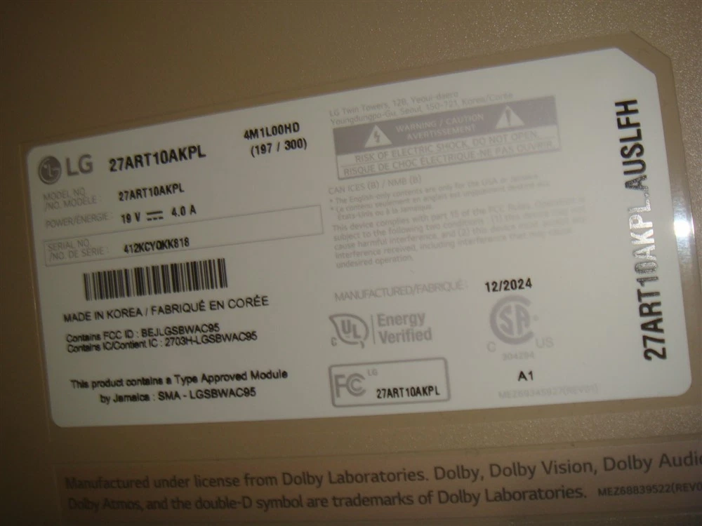 Display Technology: LED Screen Size: 27 in Maximum Resolution: 1080p (FHD) Brand: LG Model: STANDBYME