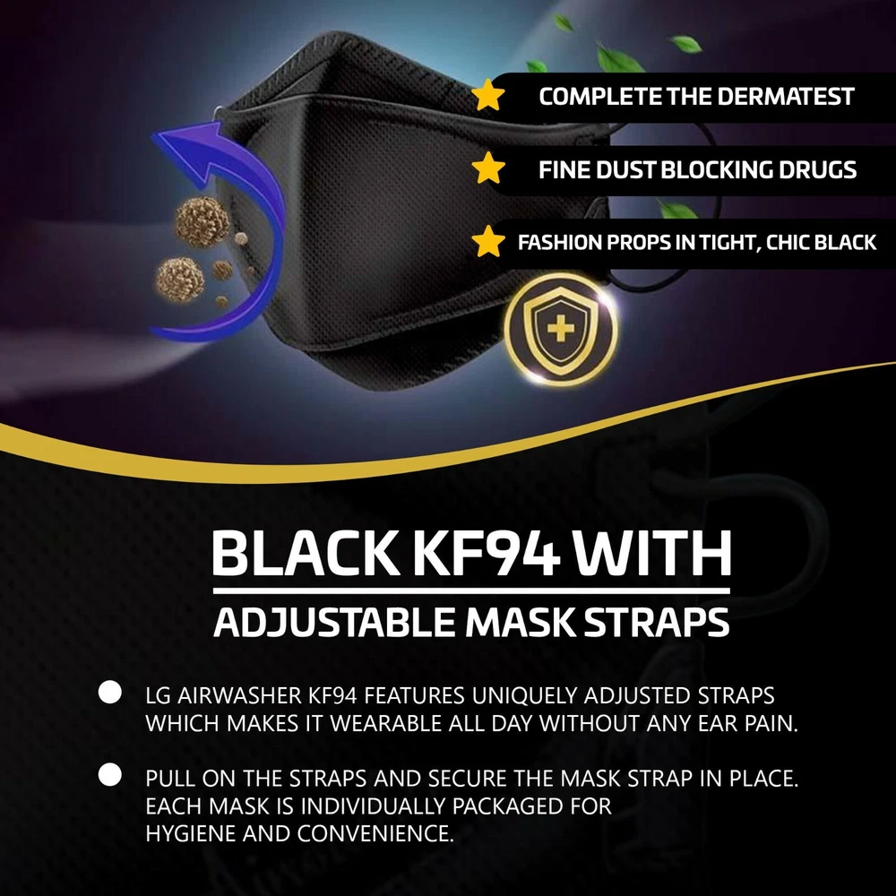 [ LG Airwasher KF94 ] BLACK Korean Face Mask Made in Korea Respirators 10 Packs