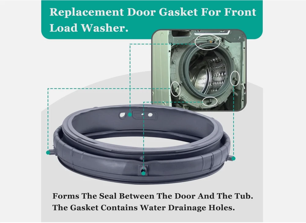 This LG front load washer gasket fits perfectly and seals tight—no leaks! Feels sturdy, easy to install, and works like the original part. Shipping was fast (weekdays only), and it arrived well-packed. Great replacement for worn-out gaskets—highly recommend if yours is cracked or moldy. Fits multiple models, so double-check your part number before ordering. Exactly what I needed to fix my washer!