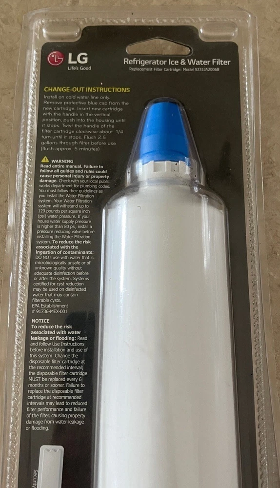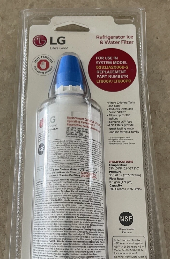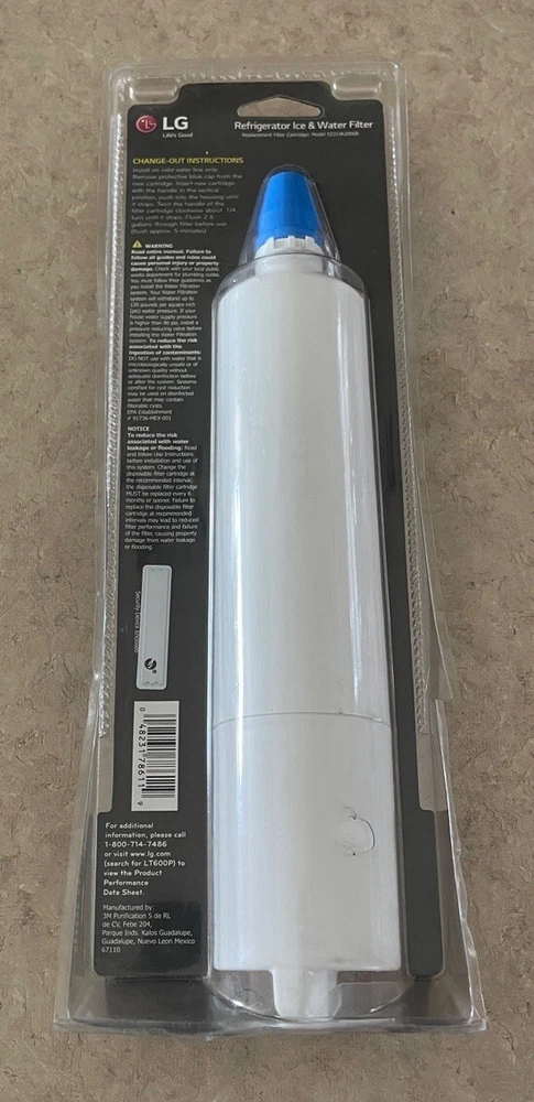 This LG LT600P Replacement Refrigerator Ice and Water Filter is the perfect addition to your Samsung Aquarius refrigerator. It is designed to remove chlorine taste and odor from your drinking water. The filter is compatible with both Samsung and Aqua Optima brands, and it has a capacity of 300 gallons. The unit is made of high-quality plastic material, and it is manufactured in Mexico. This water filter is easy to install and it comes in a sleek white color that will complement any kitchen décor. Get clean and refreshing drinking water with this LG LT600P Replacement Refrigerator Ice and Water Filter. This filter is new and unopened from it’s original packaging. Please see ALL photos for a better idea on condition and any details to the water filter.
