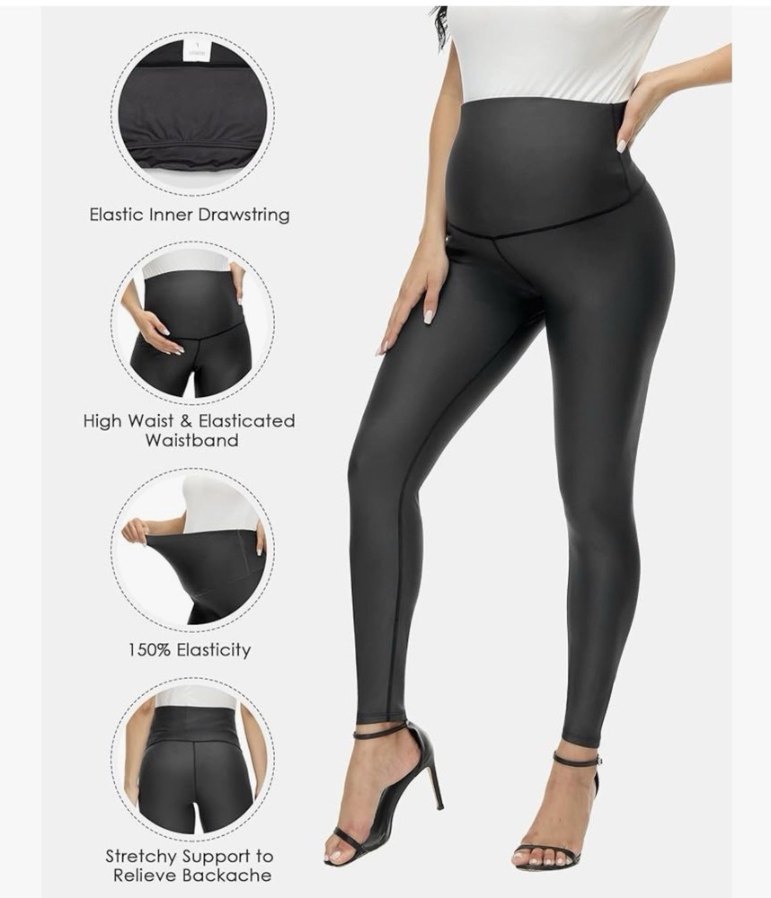 These maternity yoga pants are a game-changer! Super stretchy and comfortable, they fit perfectly throughout all trimesters. The high waist provides great support, and the faux leather look adds a stylish touch. Super soft fabric that stays in place without rolling down. Perfect for workouts or lounging—super versatile! Highly recommend for expecting moms who want both comfort and style.