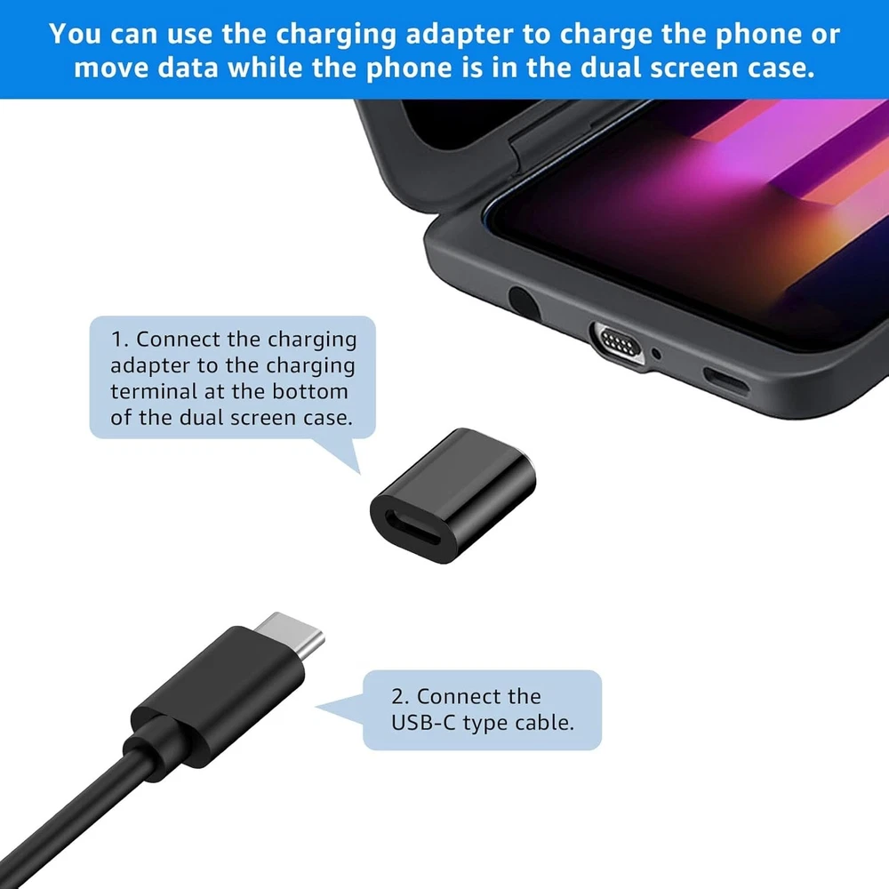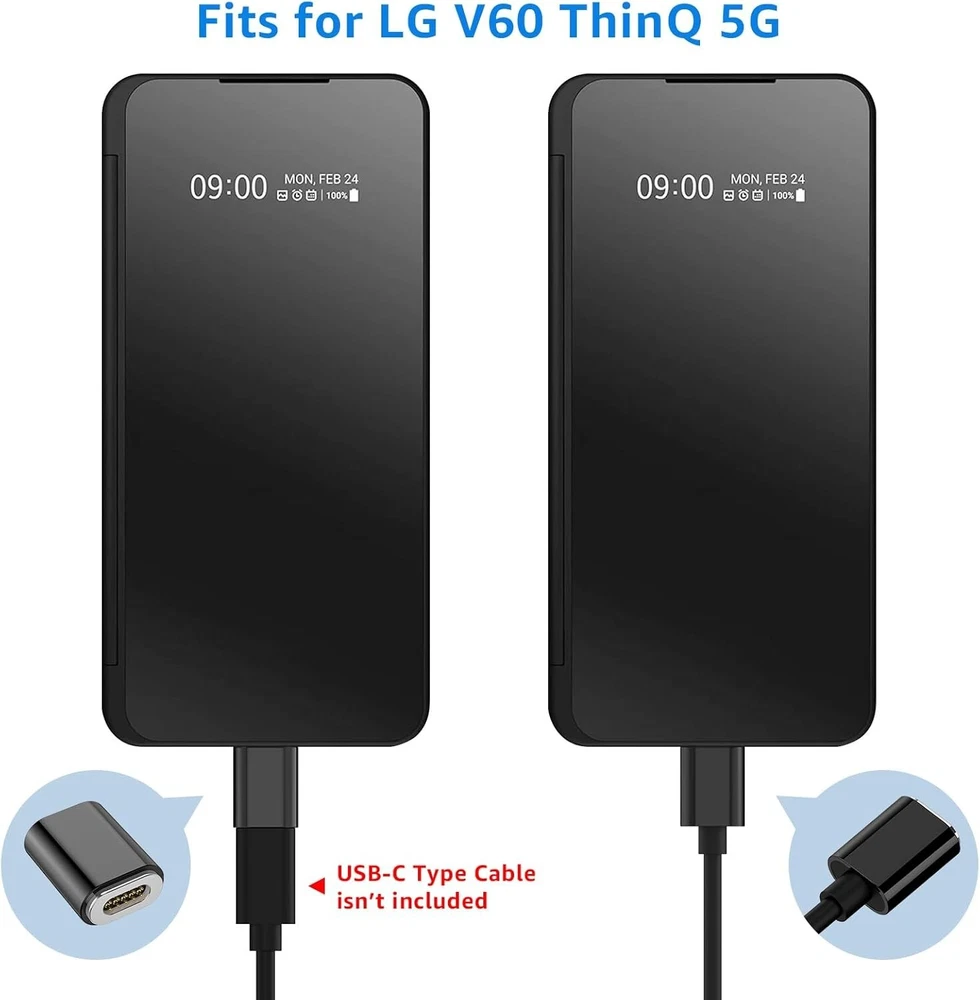 LG V60 Dual Screen Magnetic Charging Adapter with Cable - Black About this item Designed for LG V60 Dual Screen Case: This charging adapter is specially engineered to be compatible with the LG V60 dual-screen protective case, allowing you to charge your phone or transfer data while it's housed in the case. Durable and Rust-Proof Construction: The magnetic thimble is crafted from high-quality copper, ensuring a durable and rust-proof design that can withstand wear and tear, providing firm adsorption and fast charging. Convenient Magnetic Design: With its magnetic design and double-sided blind suction, this adapter offers one-hand operation, making charging easy and effortless. One end features a magnetic ejection pin, while the other end has a USB-C female socket for connecting to other data cables (not included). Classic and Practical: Combining a stylish design with smooth lines, this magnetic charger adapter is not only functional but also aesthetically pleasing, making it the perfect mobile phone charging accessory .