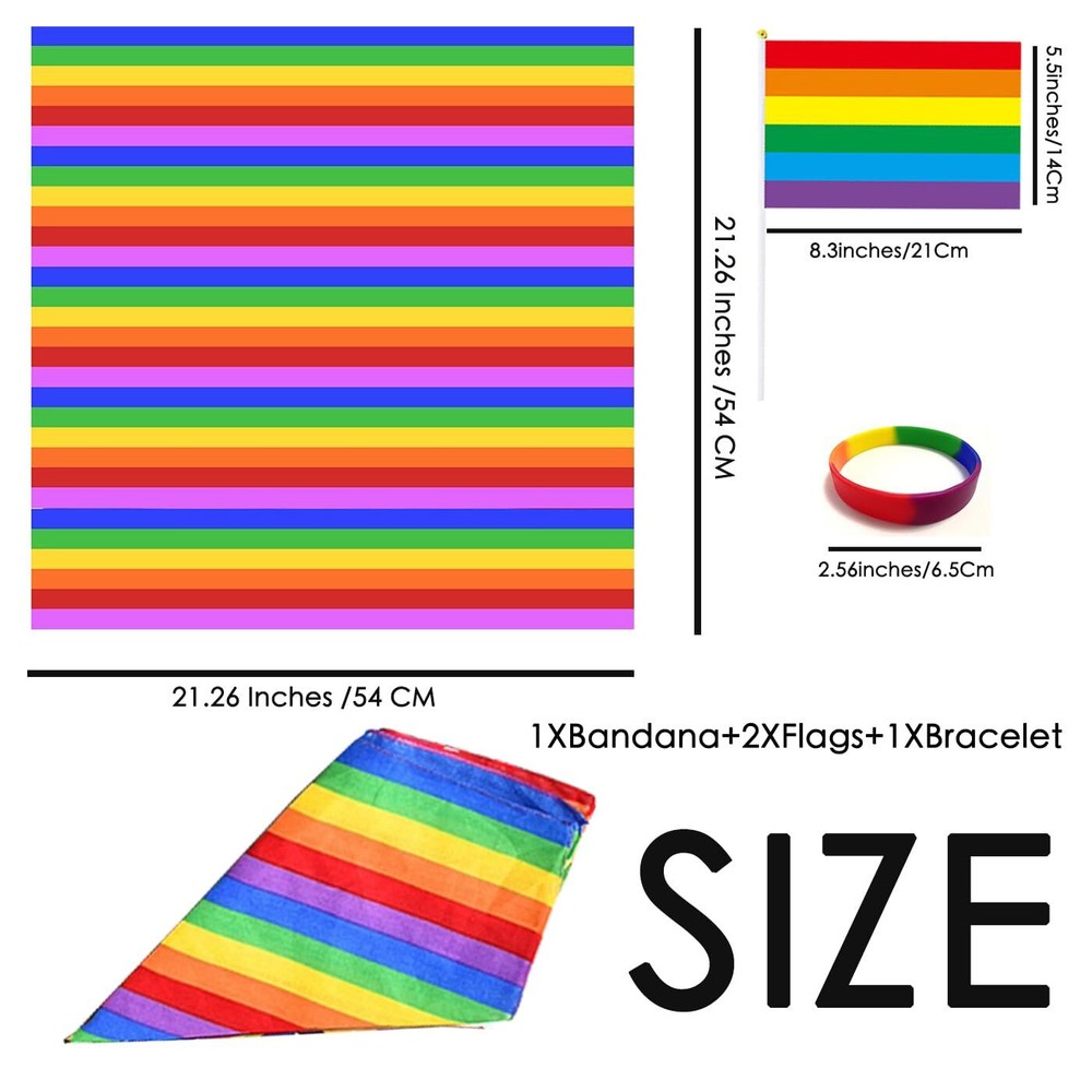 eBay Product Listing Welcome to Our Store! LGBTQ+ Rainbow Bandana,Pride Day Unisex Scarf Squares Tie Dye, LGBTQ Colorful Rainbow Headband (Rainbow Stripe) Description Description Celebrate Pride with Style and Versatility! Express your pride and individuality with the Rainbow Bandana. Perfect for Pride Day, festivals, parades, or everyday wear, this vibrant and versatile accessory is designed to make a bold statement while offering unmatched comfort and style. - **Vibrant Rainbow Design:** - Featuring a striking tie-dye pattern with the iconic rainbow colors, this bandana is a perfect way to show your support for the LGBTQ community and celebrate diversity. - **Multifunctional Accessory:** - Whether you wear it as a headband, scarf, face covering, wristband, or cowboy wrap, the Rainbow Bandana adapts to your style and needs, making it a versatile addition to your wardrobe. - **Unisex and One Size Fits All:** - Designed for everyone, this unisex bandana comfortably fits all head sizes, ensuring inclusivity and a perfect fit for all. - **Comfortable and Breathable Fabric:** - Made from high-quality, soft, and breathable material, this bandana provides all-day comfort, keeping you cool and stylish during any activity or event. - **Easy Care and Durability:** - The Rainbow Bandana is machine washable, making it easy to clean and maintain. Its durable fabric ensures it remains vibrant and fresh after repeated use. Perfect for Any Occasion: Whether you're attending a pride parade, festival, or simply want to add a pop of color to your daily outfit, the Rainbow Bandana is the perfect accessory. Its versatile design and vibrant colors make it a standout piece that celebrates love, diversity, and individuality. Show your pride and support with the Rainbow Bandana. Order yours today and wear your colors with pride! Features 【Versatile and Multifunctional】Wear it as a headband, scarf, face covering, or wristband. The bandana’s versatile design allows for multiple styling options to suit any occasion. 【Unisex and One Size Fits All】This Set Included 1 Bandana, 2 Flags and 1 Bracelet.Designed to be worn by anyone, this unisex bandana fits all head sizes comfortably, making it an inclusive accessory for everyone to enjoy. 【Soft and Comfortable Material】Made from high-quality cotton, breathable fabric, the bandana ensures comfort throughout the day, keeping you cool and stylish whether you’re at a parade, festival, or casual outing. 【Easy to Clean and Maintain】The durable material is machine washable, making it easy to clean and maintain, ensuring your bandana stays vibrant and fresh for repeated use. 【Good for LGBTQ Parade】Rainbow Bandana,Pride Day Unisex Scarf Pocket Squares Tie Dye Cowboy Wraps Headwraps, LGBTQ Colorful Rainbow Headband Hippie for Pride Month Decoration Accessories,For GAY Lesbian Transgender. Return Policy All our products come with a 30-Day Return Policy. If you are not 100% satisfied, please contact us to arrange a return or replacement. We offer free shipping on returns and will provide a prepaid return label. To initiate a return, please contact our customer service team through eBay messaging. We will guide you through the process and ensure your issue is resolved promptly. Shipping Information We ship to the address provided on eBay. Please ensure your address is correct. Delivery usually takes 2-4 business days. If there are any delays, please allow an additional 1-2 business days. We use reliable shipping services such as UPS, FedEx, and USPS. We only ship within the contiguous United States and do not offer local pickups. Shipping is free on all orders, and tracking information will be provided once your order has been shipped. If you have any questions about shipping, please contact us. Contact Us If you have any questions, please contact us via eBay message. We respond within 1 business day. Our customer service team is here to assist you with any inquiries or issues you may have. Customer satisfaction is our top priority, and we are committed to providing you with the best shopping experience. Please do not hesitate to reach out to us. About Us We are committed to providing high-quality products, competitive prices, and excellent customer service. Our goal is to make sure you are completely satisfied with your purchase. Thank you for your business and the opportunity to serve you. We look forward to providing you with the best possible shopping experience.