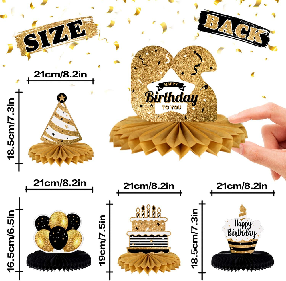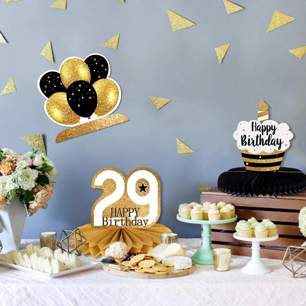 These honeycomb centerpieces are a total party hit! The gold print looks classy and the setup is super easy—just pop them open and they instantly add festive flair. Perfect for a 29th birthday, they’re sturdy, eye-catching, and got so many compliments! Loved how they came in a set of eight, making the table decor effortless. Definitely worth it for the wow factor!