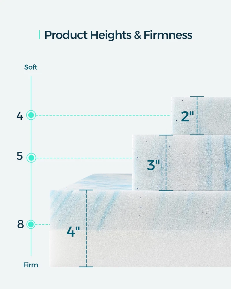 Gel Memory Foam Mattress Topper - Infused with real gel beads to prevent overheating, you can enjoy the blend of softness and cooling, ensuring you wake up refreshed and rejuvenated. Upgrade your sleep experience with LINSY LIVING king mattress topper! Soft Memory Foam - 3 inches mattress topper is made of soft gel memory foam, it’s slow rebound feature can add comfort to your bed. When sleeping on it, you can relax your body and feel the tiresome be absorbed by the memory foam, waking up in the morning, you would feel fresh and energetic Take Your Sweet Dreams Back - Is your mattress old enough to make you feel the spring underneath? It is time to get a LINSY LIVING king mattress topper, with it's soft and comfy, your sleep quality would be improve within affordable budget. Upgrade your bed does not need to buy a whole new mattress CertiPUR-US Certified - LINSY LIVING memory foam mattress topper king has passed the CertiPUR-US test, which means our mattress topper has passed strict tests and meet the standards for smell, material, performance and durability, a bed topper you can trust 3 Thickness Option - Our gel memory foam mattress topper comes in 3 firmness option. 3 inch is medium firm, it's ideal for most people with softness of 5, offering a balance of soft and support. Choose the 2 inch version for softer experience and 4 inch version for firmer need.