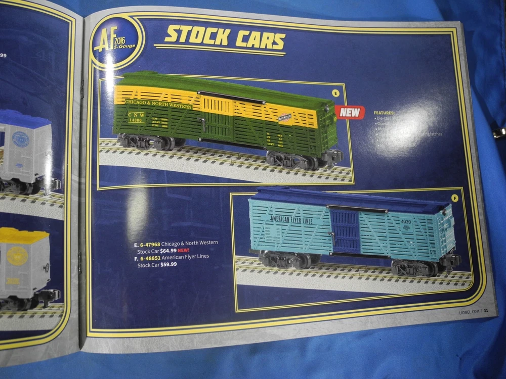 LIONEL 2016 AMERICAN FLYER TRAIN CATALOG S GAUGE train accessories NEW Lionel AMERICAN FLYER 2016 Catalog S-Gauge Lionel AMERICAN FLYER 2016 Catalog, 59 pages. Lionel Catalogs, collect the very best! What a great way to have all of Lionel’s trains at your fingertips, with photographs, descriptions and manufactures retail prices. Highly collectible, great research tool, catalogs are in excellent, start your collection today! * Includes Accessories & Christmas Sets & Cars Brand NEW! Volume discounts! FREE SHIPPING! MEDIA MAIL! Please look carefully at all photos and bid accordingly 100% Positive Feedback! Availability: In Stock and ready to ship. FAST SHIPPING!!! Have Mint condition Lionel 2015, Volume 2 Catalog. This 148 page catalog is full of Lionel 115th Anniversary; O Scale; Traditional O; and Accessories. To name a few items: The 6-82959, 115th Anniversary Berkshire loco is limited to 250 pieces. Each numbered loco is including a certificate of authenticity. The features include a Nano painted finish, uniquely numbered, a signed and numbered certificate of authenticity, special packing, Legacy Control. SD60E Diesel start out the general catalog, listing these in HS Southern. SD38 Locos in Conrail & Penn Central, Reading & Northern; GP 9's in BN, Chessie System; Rio Grand & Southern; E7AA Sets offered include the Seaboard, Burlington, and Great Northern. Steam Locos FEF-3 include the Union Pacfic 844, 835 and 838 models, along with the 8444, and 844. Other styles offered are in the Heislers, 2-8-0, & Weathered steam engins. 86' Hi-Cube Boxcars, General American Milk Cars, Logging Disconnects, 40' Flatcars with Lumber Loads; Rail ro Road Intermodal Service, PSl-4 Flatcars with Loads, PS-5 Gondolas with 50's Flatcars; ACF 40 Ton Stock Cars; PS-1 BoxCars, and 60's BoxcCars along with 8-Door 86' Hi-Cube Box cars & 89' Auto Carriers; Unibody Tank cars; Bathtub Gondola's; Twin Hoppers, Cranes with Boom cars & Cabooses are also pictured. The 21" Passenger cars in assorted road names are being offered, as well as the 18" aluminum Passenger cars. LionChief Plus FT A-A Sante Fe; Rio Grande and Erie diesels; In GP20, BNSF, NYC, Norfolk Southern & Susquehanna are pictured, and Camelback steams are in the Jersey Central and Lackawanna road names. The Mikado LionelChief has the UP & NYC Rio Grande offered; to name a few. Command Control Rotary Snowplows in Pennsylvania, Rio Grande, and NorthPole Central are pictured; Tie-Jectors, Tie Work Cars; PostWar Inspired, Space & Military equipment are also offered. Several Dealer Exclusive sets with titles of: Marquettte Freight GP38; CNW Windy City GP38; Boston & Maine Paul Revere GP9; & Jersey Central Yard Boss Sets are being offered. The assorted freight rolling stock is also offered with a new Smithsonian Boxcar. Several Road Names in the Baby Madison Passenger cars are also shown. Accessories are also pictured. This is only a sample of what is being offered in this catalog for the year. Will combine shipping on multi-catalog purchases. Member TCA 65-1165; TTOS #361; LCCA #1426.