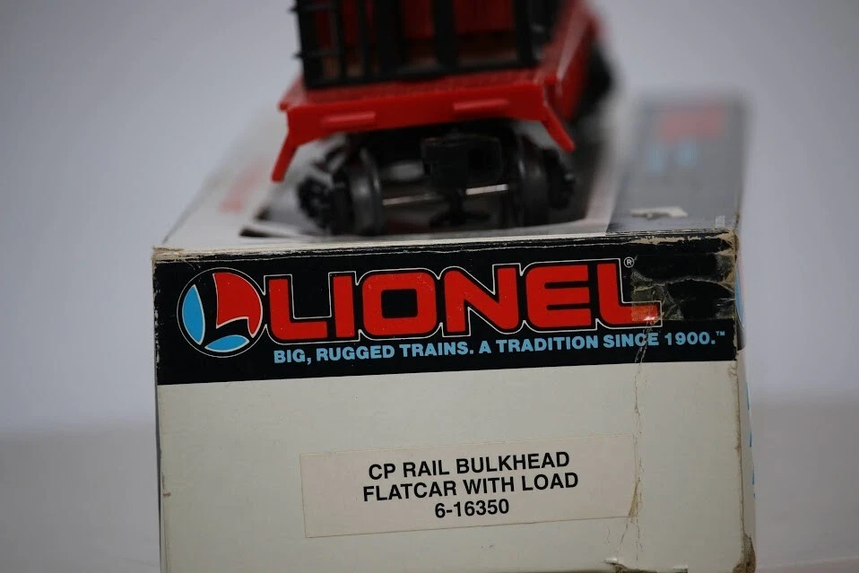 The product is a Lionel flat car modeled after a CP Rail bulkhead flatcar in red color with a transportation theme. It is designed for O gauge model railroads and comes with a load. The item is new old stock, meaning it is a previously unsold item that is in new condition. LIONEL 6-16350 - CP Rail Bulkhead Flatcar w/Load - New Old Stock Look closely at the pictures to see further details. PLEASE see photos for detailed condition!! PLEASE LOOK AT THE PHOTOS CAREFULLY BEFORE PURCHASING!! If you are purchasing more than one item from us and would like combined shipping, PLEASE request an adjusted invoice from us while still in the cart and BEFORE paying. eBay does not usually calculate combined shipping accurately and you might get overcharged. Please be aware that when we photograph items, we use lighting that will show the details well. Although we try to present the product as accurately as possible, the lighting may affect the overall look of the item by appearing lighter/darker or possibly a different hue than the actual item. Depending on the type of lighting you have in your home, there may be some differences between the photos and the actual item. If this is a concern of yours, please feel free to request additional photos made in natural lighting or ask for a more detailed description of the item PRIOR TO PURCHASE! There may be pieces that are missing or broken including, but not limited to, couplers, brake wheels, steps, ladders, railings, etc. May need detailed cleaning. PLEASE NOTE: We greatly appreciate your interest in our item for sale. We look forward to a pleasant, quick and satisfying transaction for everybody, so please note the following information before bidding. Thank you! ITEM DESCRIPTIONS: * We will try to describe items well and provide plenty of photos. Please review these carefully before bidding or purchasing. * Only the items pictured and described are what you will receive when purchased. * We will occasionally offer an item clearly marked "AS-IS". This means that we are not sure if it works because we are unable to test it for whatever reason. We will offer these at a discounted price then a similar "working" item. It is possible that these items will work fine, but it also is possible that these items are more useful for their parts. Please only bid on or purchase these items if you are well aware of this, as we will only provide refunds of actual item price (no shipping cost refunds) for these items. * If you have any questions that aren't addressed by the descriptions or photos, please feel free to ask before you bid. SHIPPING: * We offer international shipping, please feel free to contact us if you have any questions. * We try to pack items as carefully as possible, but damage may occur during shipping. If you receive an item that was damaged in shipping, please contact us and we will work with you to resolve the problem. * We will combine shipping costs for all items the same buyer purchases from us within 2 days. Please wait to pay for items until you're done shopping with us. Please contact us if you're expecting to buy more items from us, or to have us adjust the shipping costs. * We will usually ship items out within 24 hours of payment being received Sunday through Friday at noon. We will notify the buyer if there will be a delay in shipping for some reason. Please allow additional time for holidays and weekends when the post office is closed. If payment is received after noon (EST) on Friday, the item might not be shipped until the following Monday Or Later If Monday Is Holiday. * We do try to recycle shipping materials as much as possible. RETURNS: We abide by eBay's Money Back Guarantee. We definitely want our customers to be happy with their purchase! You may return an item within 30 days of receiving it with the following guidelines: * If the item is defective or damaged (unless we clearly marked the listing "AS-IS"), the buyer will receive a full refund after the buyer returns it and it is received by us. Customers who falsely claim their item is defective, damaged, or not as described in order to receive a full refund and free return shipping will be permanently blocked from making future purchases from us. * If the item is as described (including "AS-IS" items) and the buyer decides for any other reason than defective/damaged to return it, only the actual price of the item will be refunded once it has been returned and it is received by us. The buyer will be asked to pay all original and return shipping charges. This includes all reasons other than defective/damaged, including wrong size, wrong type, changed mind, etc. All "AS-IS" items will fall into this category of return. Please make sure the item is what you want before purchasing it. * Please contact us before initiating a refund request, issues, questions or concerns. We will do our best to get back to you as quickly as we can. Thank you and if you read this far... you are awesome and we hope you have a great day!! FEEDBACK: We always leave feedback at the end of transaction. We consider the transaction to be over when we receive feedback from the buyer confirming the item arrived satisfactorily. If you are unsatisfied with your purchase please contact us before leaving neutral or negative feedback. WE APPRECIATE POSITIVE FEEDBACK IF YOU ARE SATISFIED WITH YOUR PURCHASE! THANK YOU FOR YOUR INTEREST IN THIS ITEM!