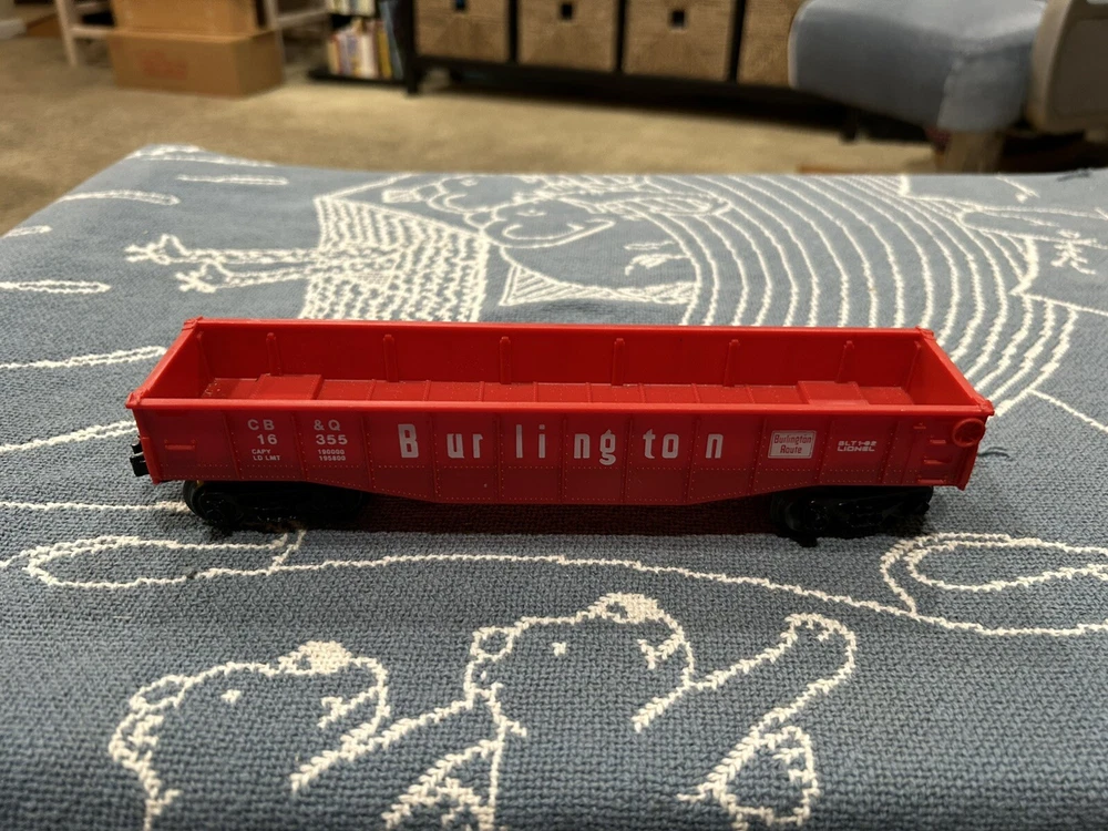 HomeLIONEL BURLINGTON RED GONDOLA ROAD 16355 NO BOX - CLEAN