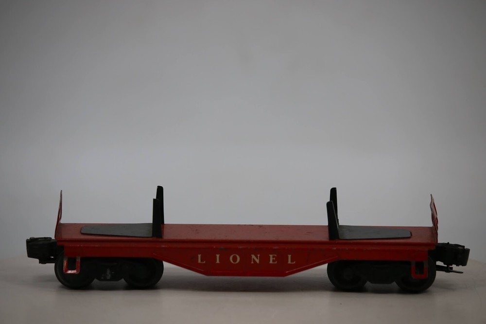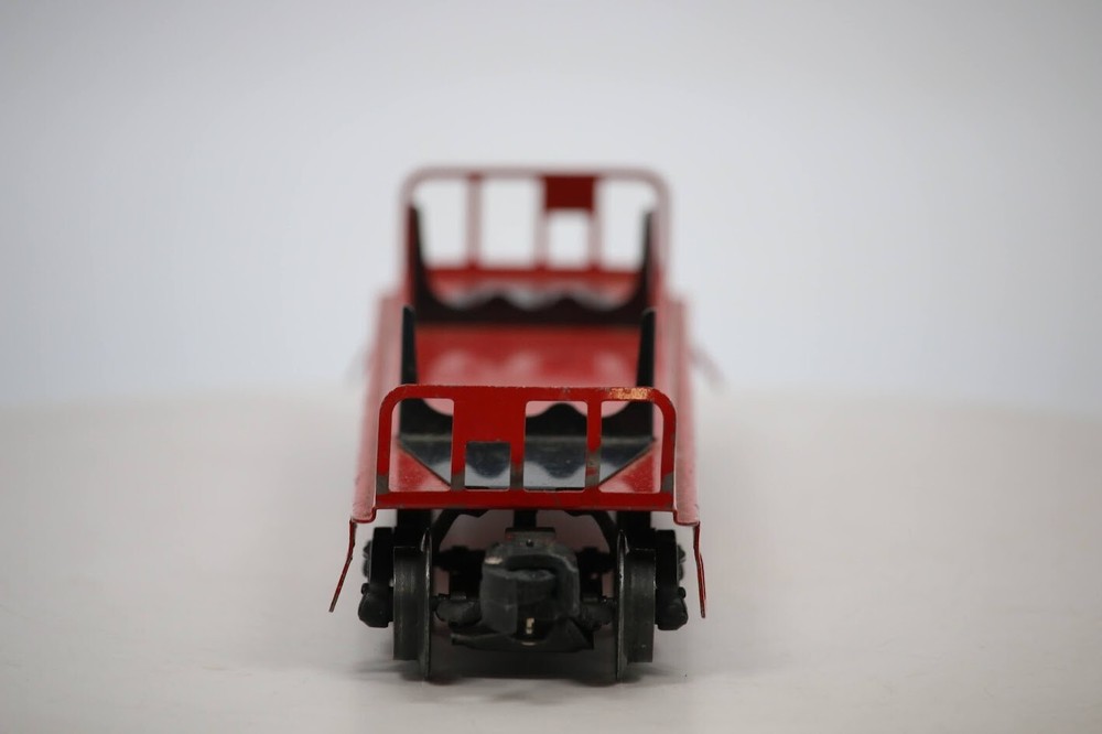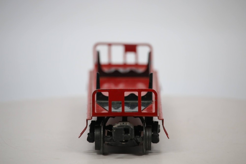LIONEL O - 027 gauge LIONEL LINES LOG CAR METAL RED SKU#009518 PLEASE READ BEFORE PURCHASING Condition: Please review all photos carefully for details on the item's condition. Photos are part of the description, and any notable flaws will be highlighted. Combined Shipping: If purchasing multiple items, request a revised invoice before paying to ensure accurate combined shipping costs. eBay's system may not calculate this correctly, leading to overcharges. Lighting Disclaimer: Photos are taken under bright lighting to highlight details, which may cause slight variations in color or hue depending on your lighting. If you need additional photos (e.g., in natural light) or more details, please ask before purchasing. As-Is Items: Items come AS-IS. The way they appear in our pictures is how the Item will arrive to you. What's Included: Only the items shown in the photos and described in the listing are included in the purchase. We strive to describe items thoroughly and provide clear photos. If you have any questions or concerns not addressed in the listing, feel free to ask before purchasing. Thank you for shopping with us!