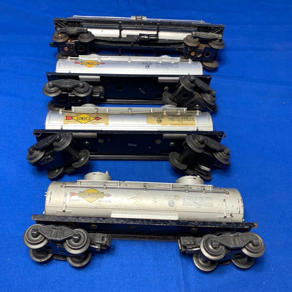 VINTAGE LIONEL O-27 SCALE O-GAUGE TRAIN PRE WAR & POST WAR TANK CAR LOT - FREE SHIPPING NOTE: THESE HAVE BEEN STORED FOR 20+ YEARS NOTE: THERE ARE TEN (10) TANK CARS IN VARIOUS STAGES OF COMPLETENESS & CONDITIONS NOTE: ALL ARE UNTESTED THE PHOTOS DISPLAY THE TANK CARS THAT YOU WILL RECEIVE THESE COME FROM AN ESTATE THAT WE ARE CURRENTLY LIQUIDATING - TDC-2 WE ARE NOT LIONEL EXPERTS AND WILL LET THE OVERSIZED PHOTOS SPEAK FOR THEMSELVES OVERALL CONDITION IS MUCH BETTER THAN FAIR SHIPPING - WE SHIP WORLDWIDE ITEM(S) WILL BE PROFESSIONALLY PACKAGED CAREFULLY AND SECURELY WE OFFER FREE INSURANCE & TRACKING WITH BUY NOW PAYMENT - VARIOUS PAYMENT OPTIONS AVAILABLE VISA - MASTERCARD - AMERICAN EXPRESS - DISCOVER - PAYPAL - CHECK FEEDBACK - WE LEAVE FEEDBACK FOR ALL TRANSACTIONS AS THE SELLER, AS SOON AS YOUR PAYMENT ARRIVES, WE LEAVE POSITIVE FEEDBACK AS THE BUYER, PLEASE LEAVE POSITIVE FEEDBACK THE DAY THAT YOU RECEIVE YOUR WELL PACKAGED ITEM(S)