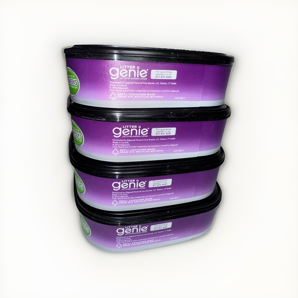 The LITTER GENIE Cat Litter Disposal System is a convenient and effective solution for managing cat litter waste. Each refill bag is 14ft long, providing ample space for disposing of litter. The Litter Genie brand ensures quality and reliability in keeping your feline's litter area clean and tidy. This lot includes 4 refill bags, making it easy to keep your cat's litter box in top condition.