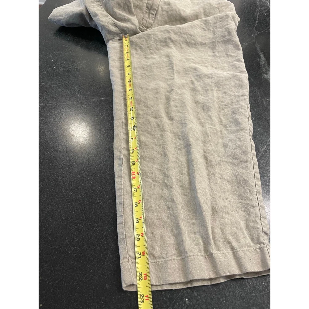 Naturally cool and comfortable. Linen lasts forever when taken care of properly. these pull on pants are soft, light, breezy and incredibly easygoing. Forgive the wrinkles, these press beautifully but I wanted to do a fresh wash on them before packing them away for sale. In excellent condition. and if you know the L.L. Bean line then you know these are high quality pants. Pull on pant with elastic waist. size 14R. Has front pockets. flowy fit to the legs. inseam:@22" rise: @12" I actually like them unpressed for a more BOHO look, but pressing them makes them look super sharp. unpressed make for a great laid back vacation look.