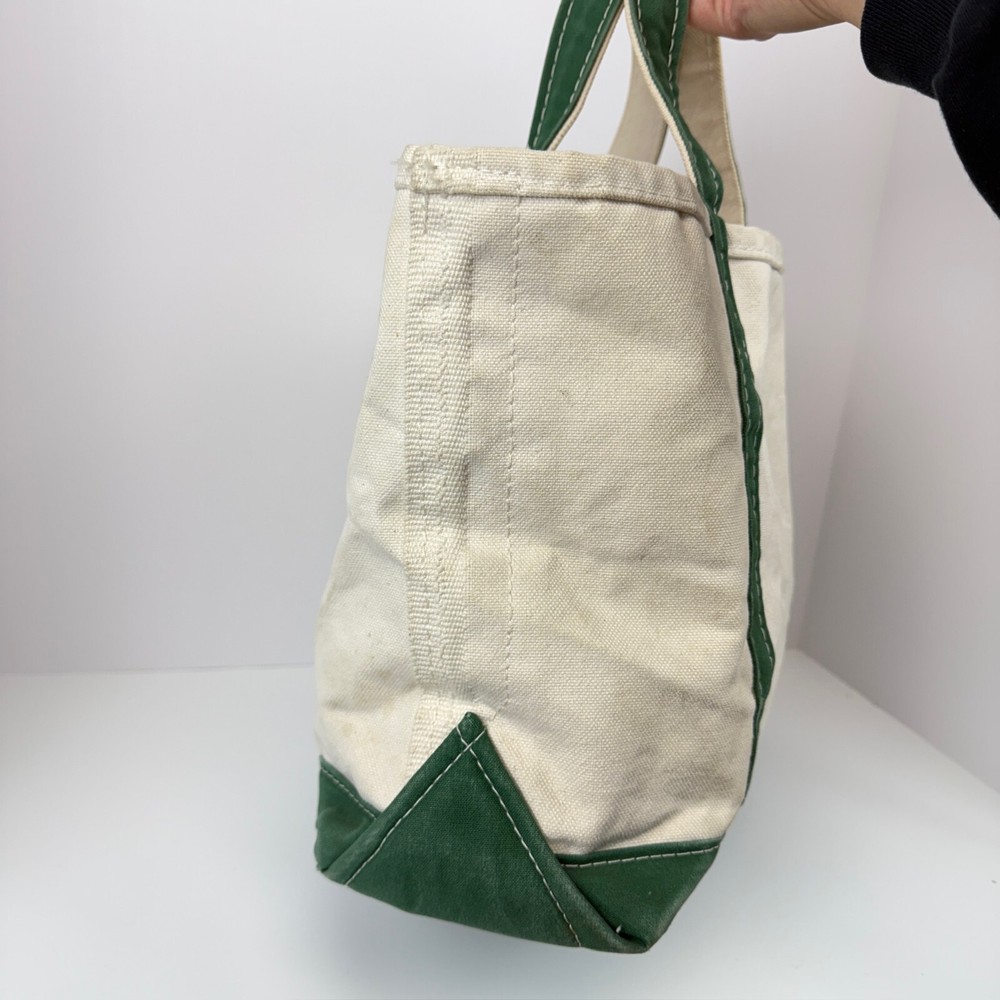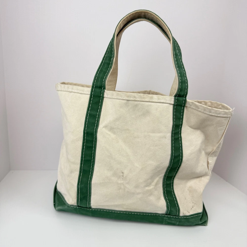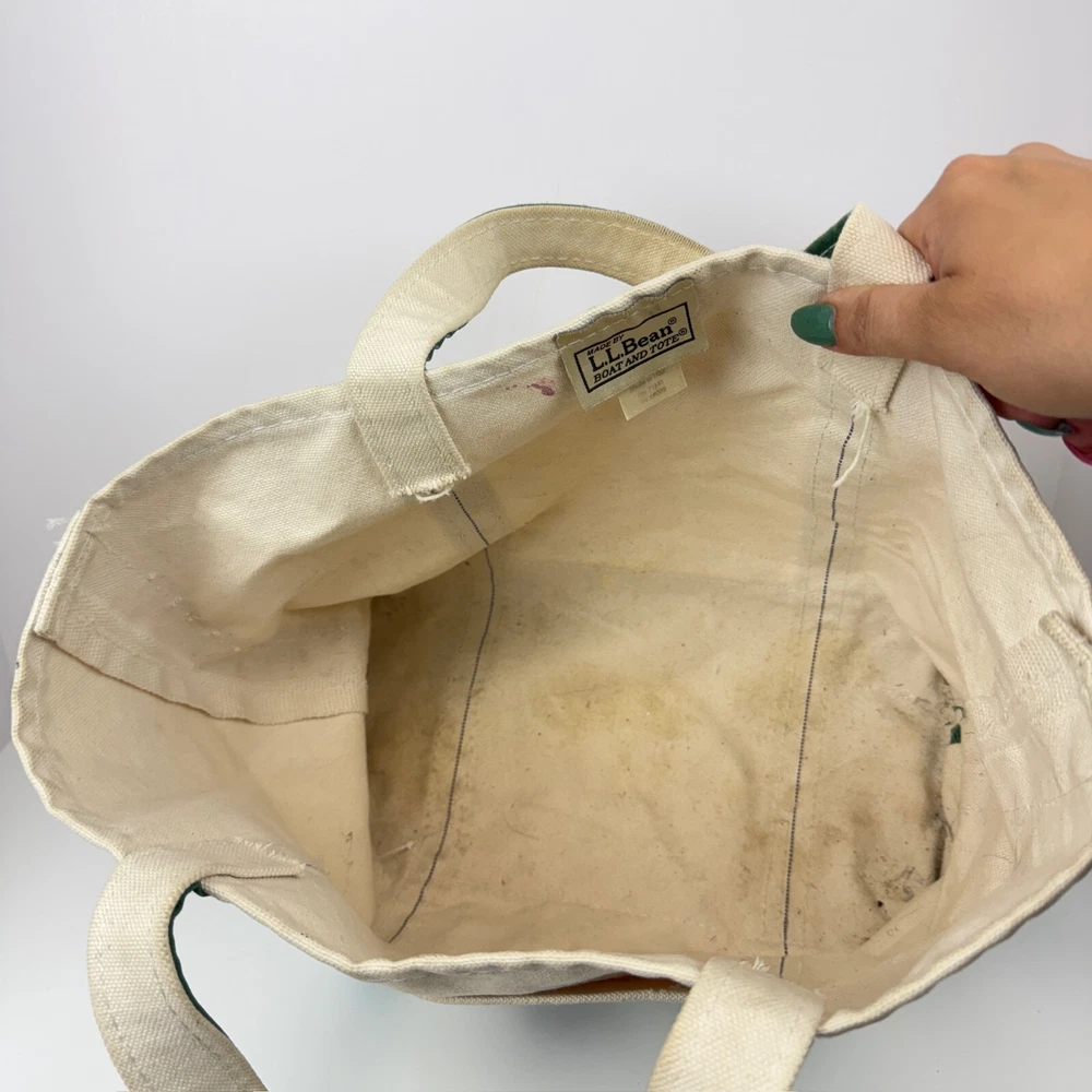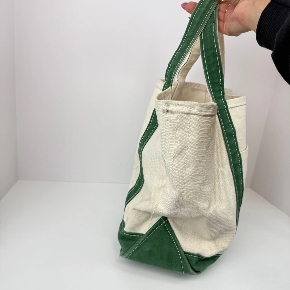 LL Bean 100 Years Anniversary Medium Boat and Tote Bag Green Canvas USA Green some marks throughout but no major flaws or holes 14" x 15" x 5" 7" strap drop