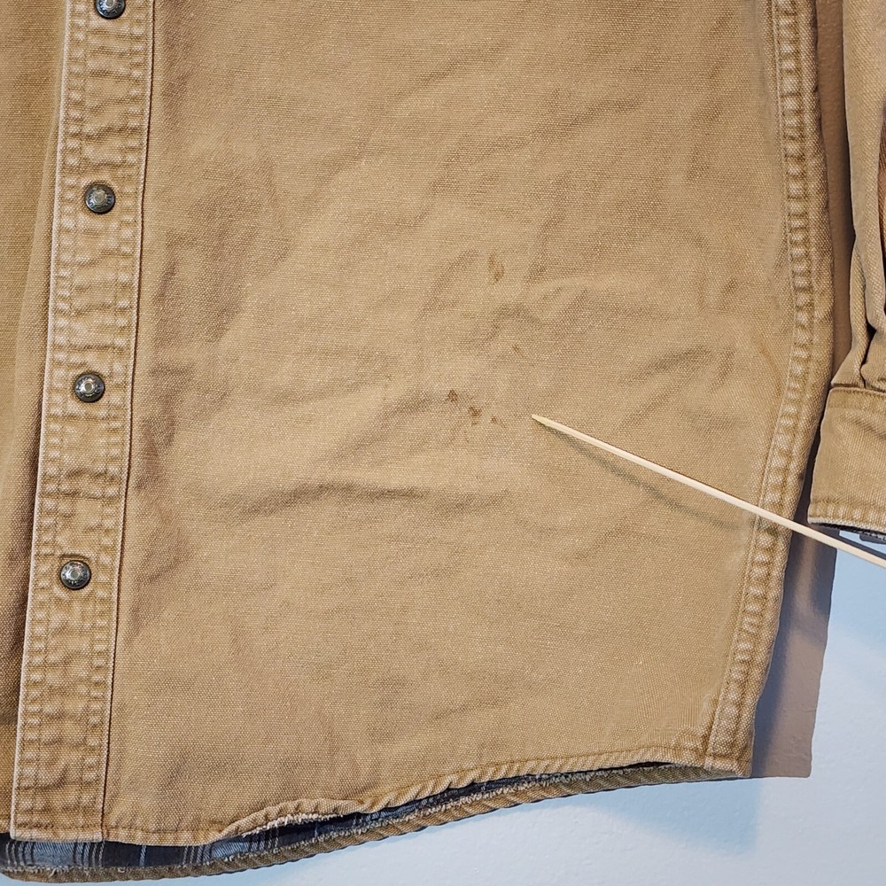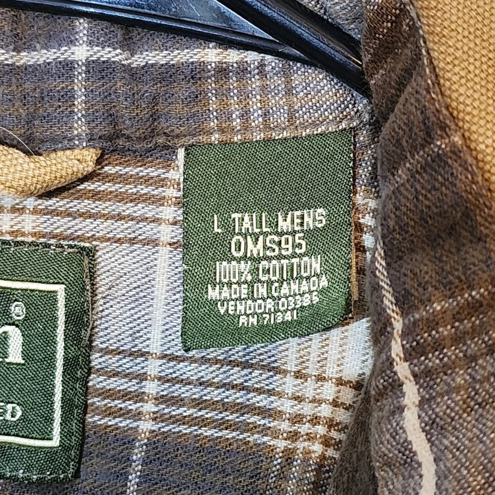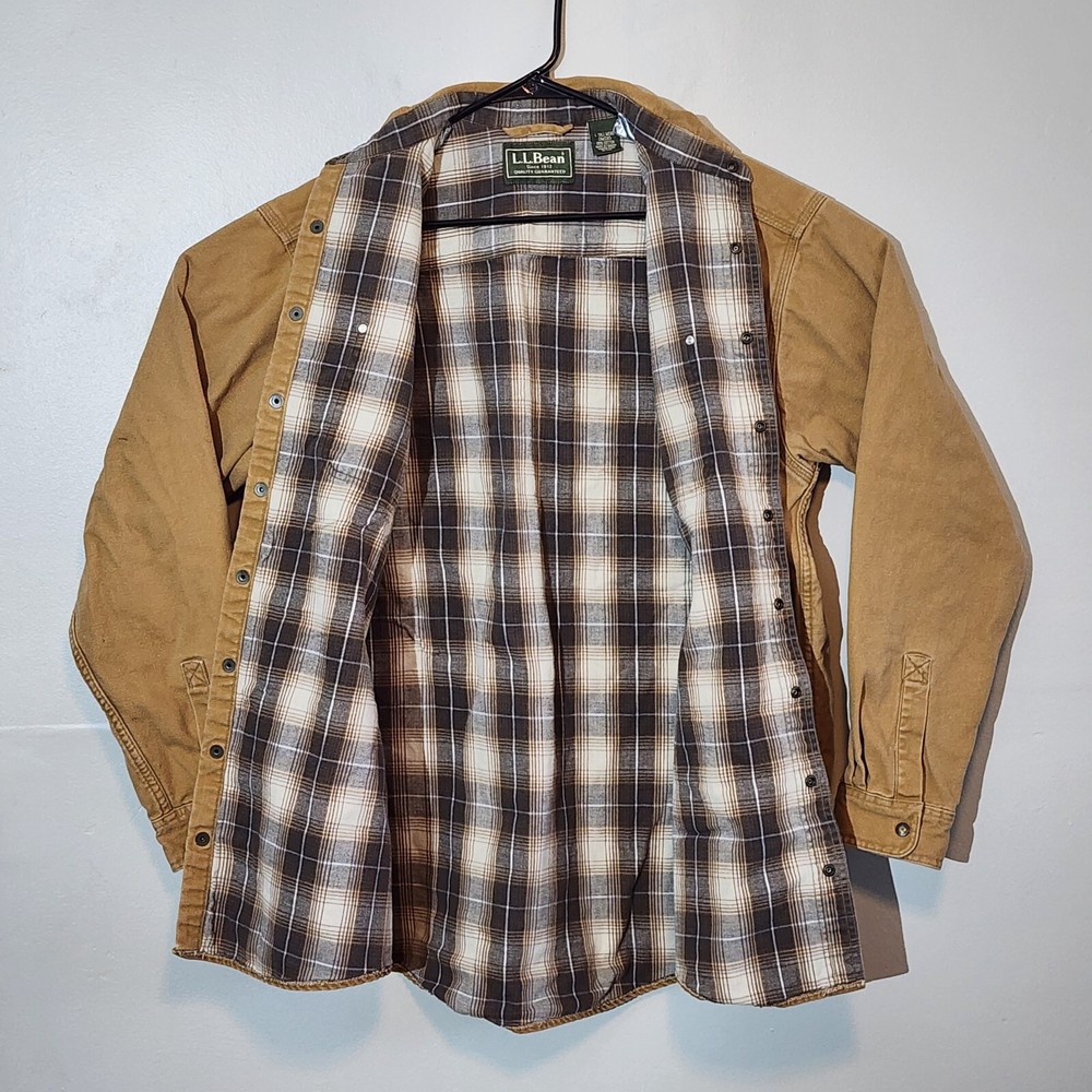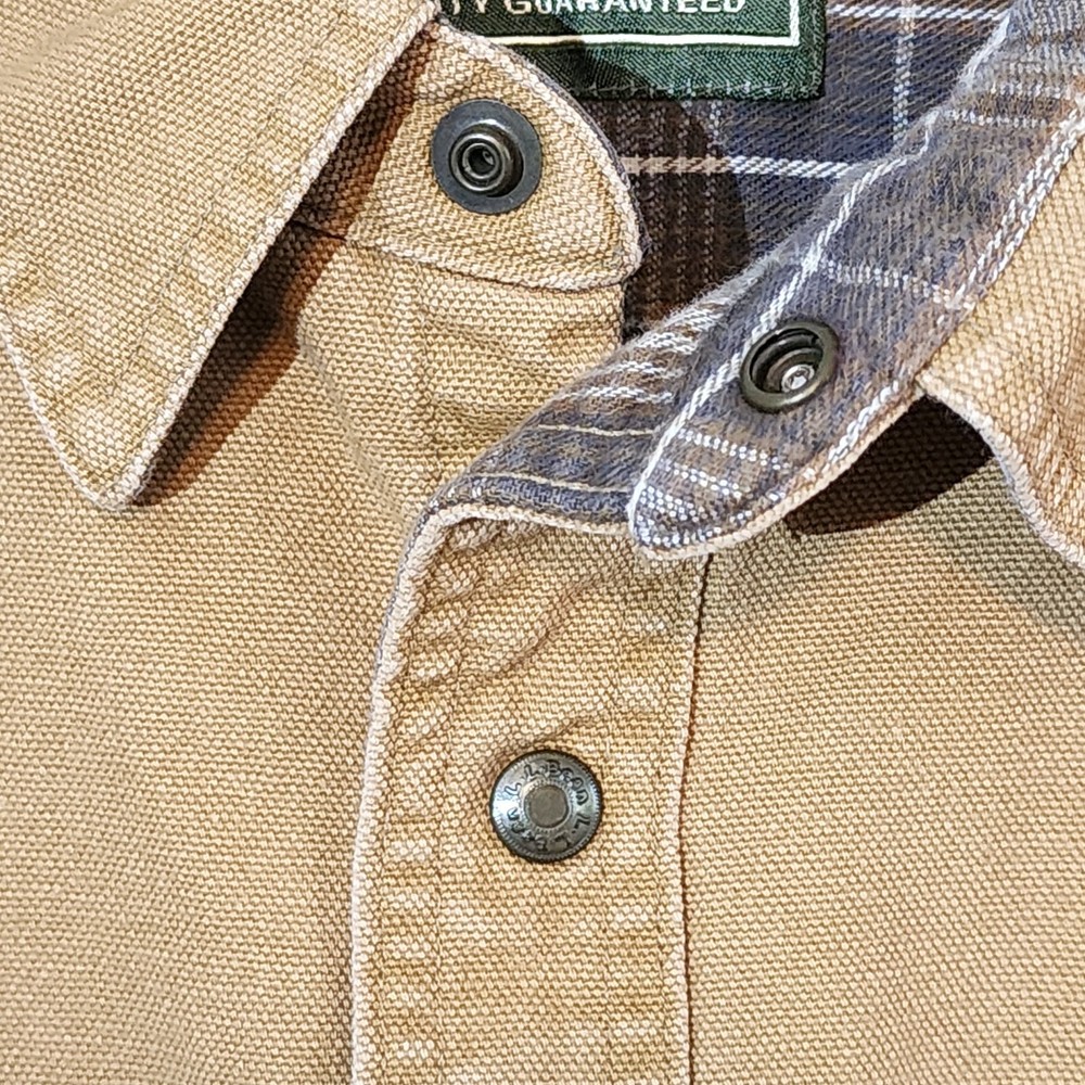 LL Bean Barn Jacket Mens Large Tall Tan Plaid Lined Snap Buttons Canvas Chore