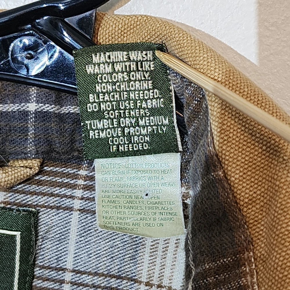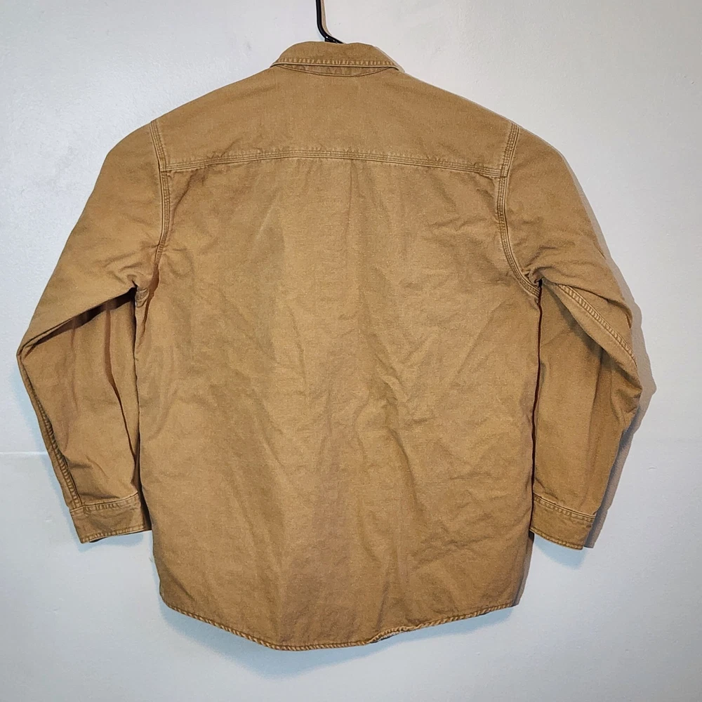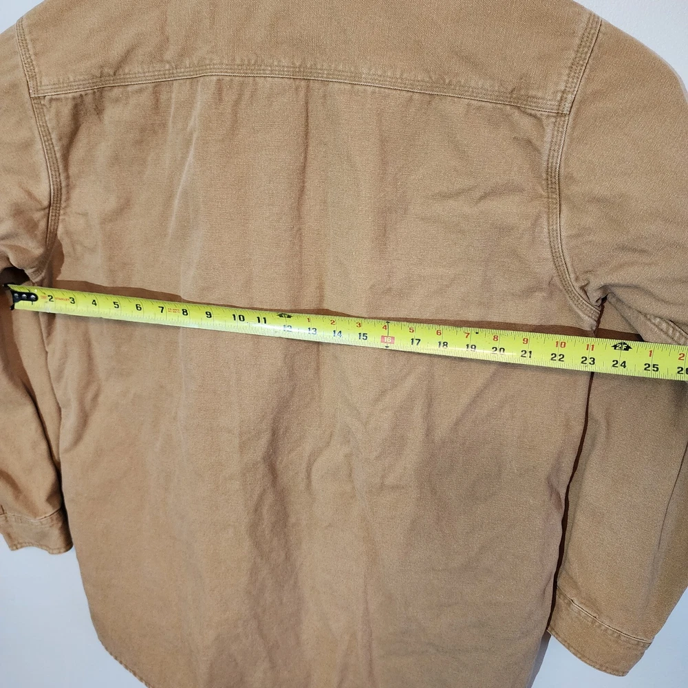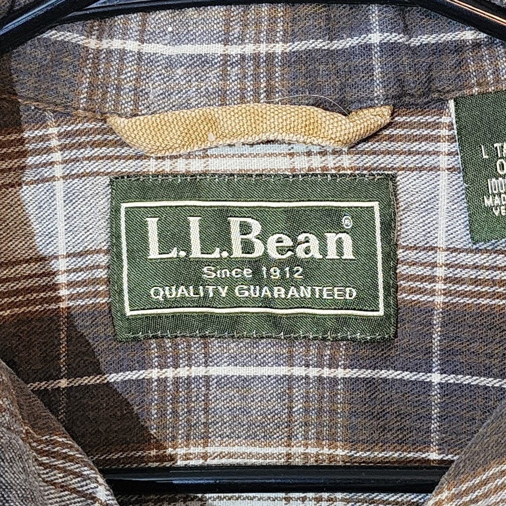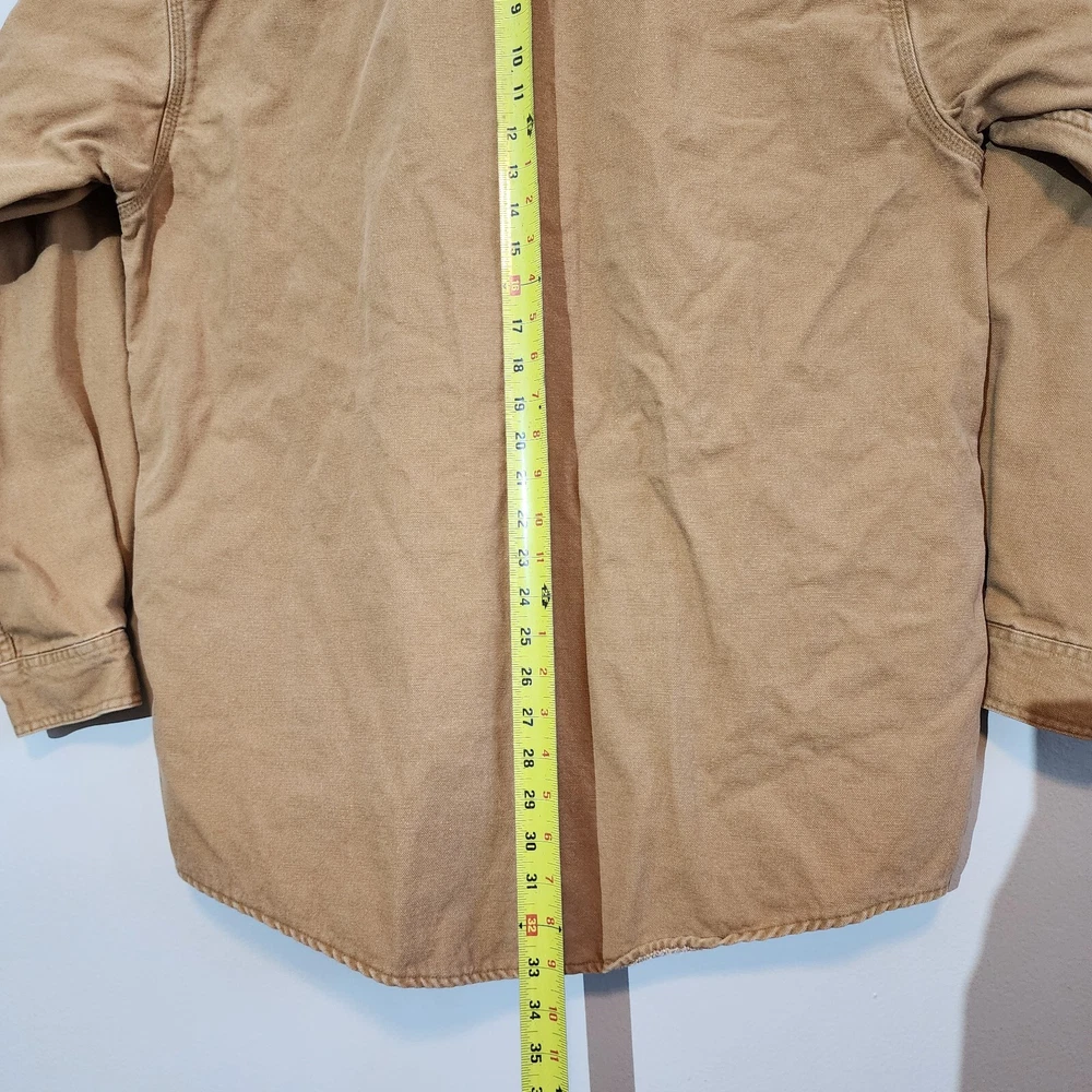 LL Bean Barn Jacket Mens Large Tall Tan Plaid Lined Snap Buttons Canvas Chore