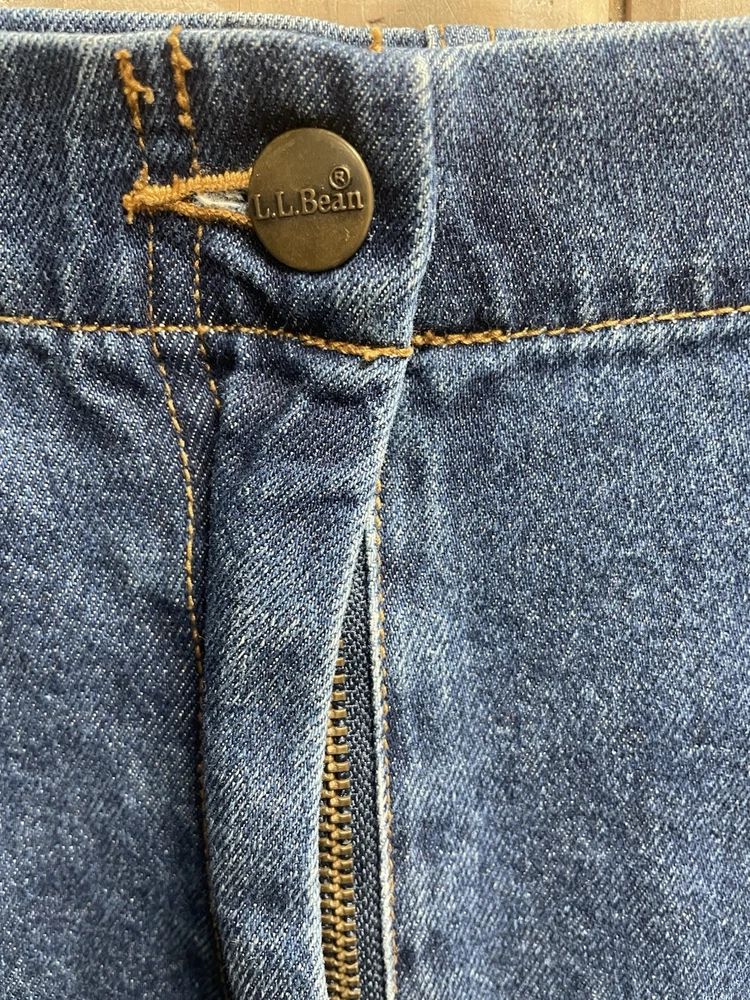 Style: A-Line Pattern: Solid Fabric Wash: Medium Vintage: Yes Closure: Zip Rise: High Theme: 80s, 90s, American, Bohemian, Cowboy, Geek Department: Women Size Type: Regular Garment Care: Machine Washable Handmade: No UPC: does not apply Country/Region of Manufacture: United States gtin13: does not apply Season: Fall, Spring, Summer, Winter Fabric Type: Denim Size: 10 Material: 100% Cotton Color: Blue Type: Skirt Skirt Length: Knee Length Occasion: Casual Brand: L.L. Bean Seller Notes: “excellent - like new” Features: Pockets, Slit Personalize: No