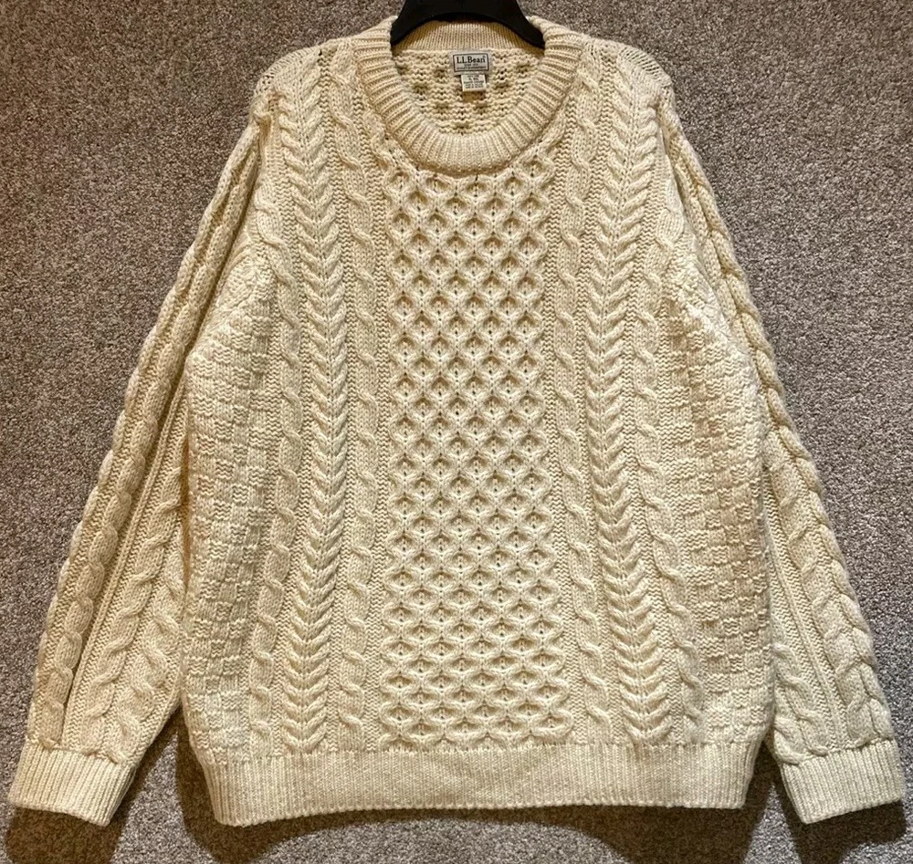 Very good, no holes or stains. Pre-Owned, Ships USPS Ground Advantage. BN61 LL Bean Ireland Mens Wool Cable Knit Fisherman Crewneck Pullover Sweater Size XL