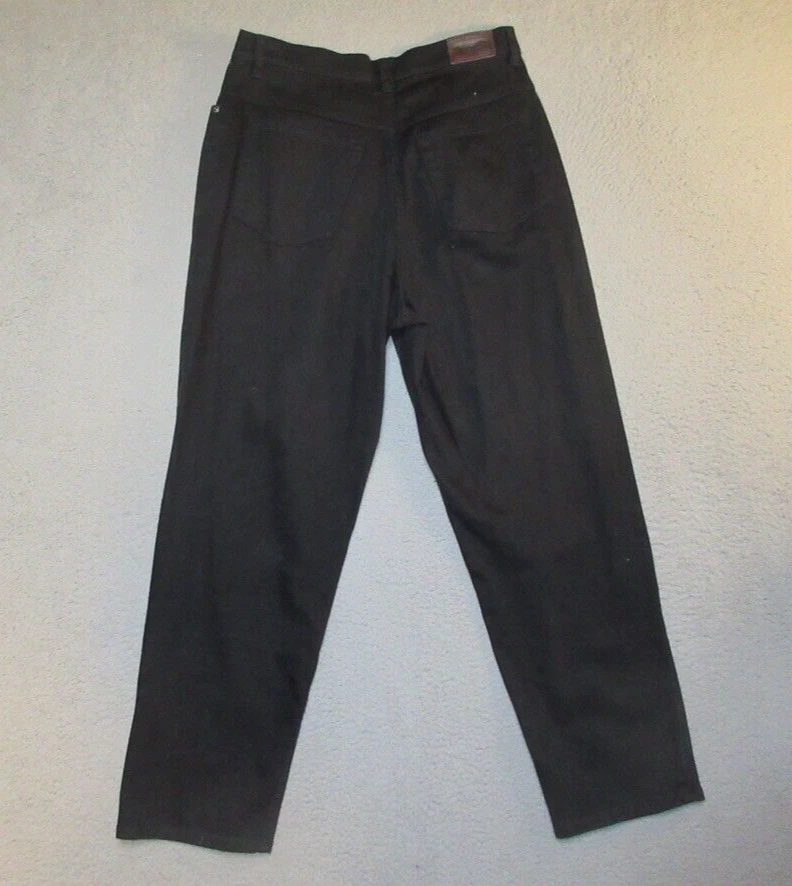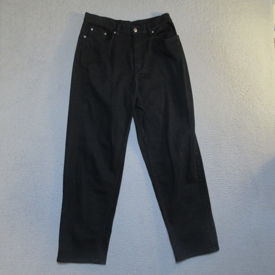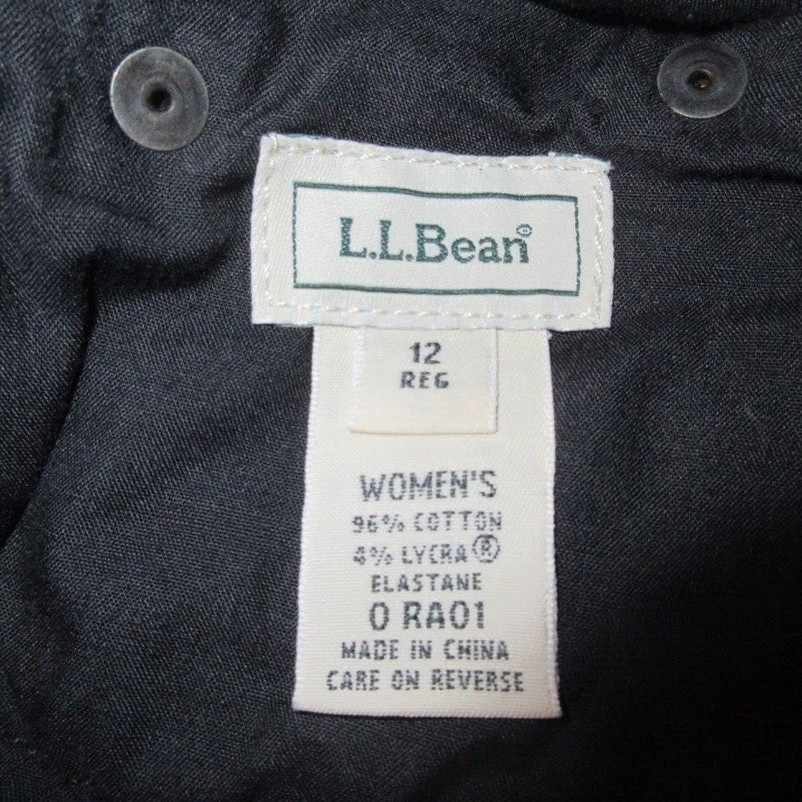 Waist Size: 30 in Garment Care: Machine Washable Closure: Button, Zip Vintage: No Fabric Wash: Dark Size Type: Regular Material: Cotton, Spandex Fabric Type: Denim Pattern: Solid Fit: Classic Season: Fall, Spring, Summer, Winter Style: Tapered Handmade: No Inseam: 29 in Pocket Type: 5-Pocket Design Color: Black Size: 12 Type: Jeans Country/Region of Manufacture: China Features: Stretch Rise: High (Greater than 10.5 in) Personalize: No Department: Women Brand: L.L. Bean