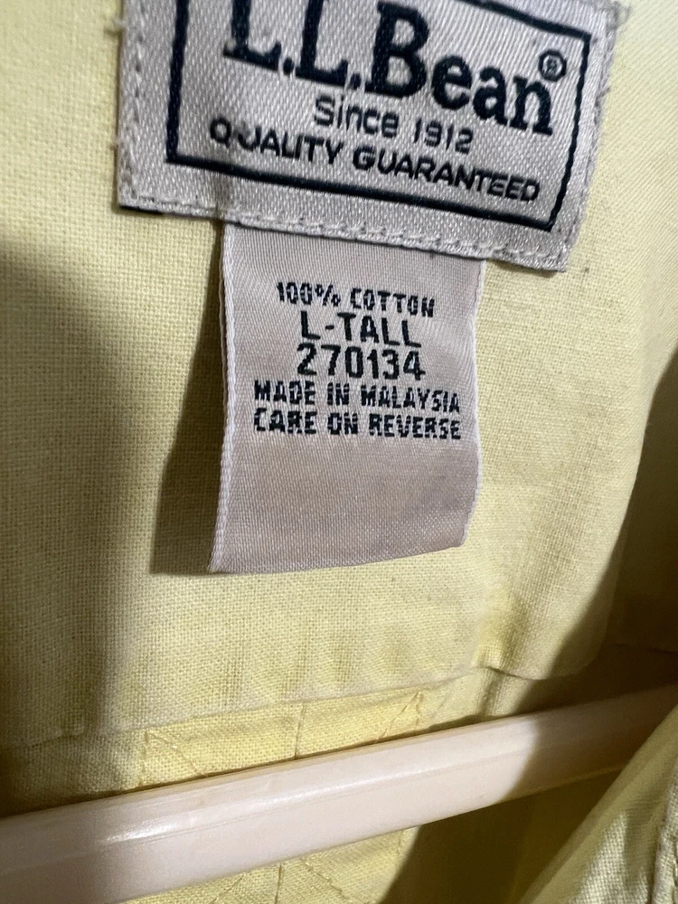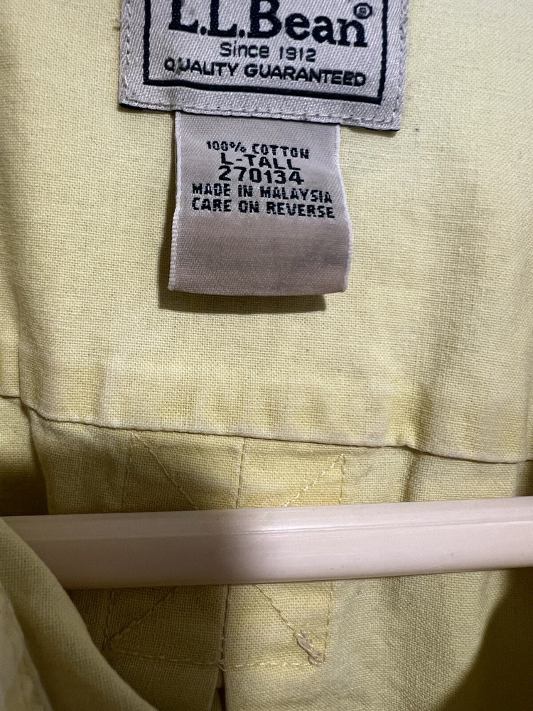 LL Bean Shirt Mens Large Tall Yellow Canvas Long Sleeve Button Up. 100% cotton, Great condition . I accept free returns for 30 days.