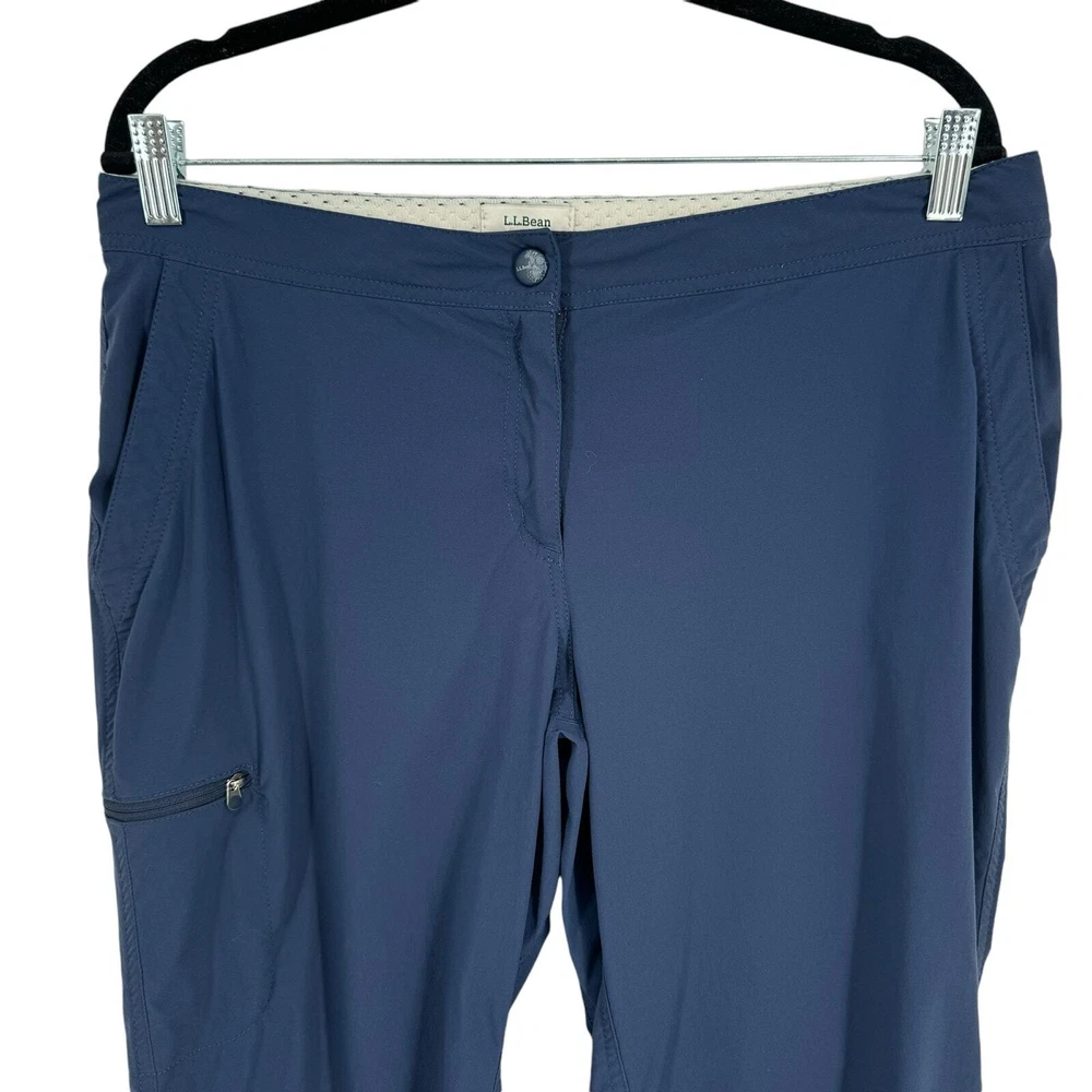 LL Bean Water Repellent Comfort Trail Pants 12 Petite Navy Blue Zipper Pockets -Size: 12 Petite, see measurements below -Color: Blue -Condition: Pre-Owned Condition *please see pictures for condition Approximate measurements while laying flat are: waist: 17" rise: 9.5" inseam: 28" leg opening: 8.5" SKU: O576 Next Business Day Shipping **Attention: All used clothing has been cleaned/laundered per eBay standards. All clothing new and used have been steam cleaned and/or sanitized per eBay standards. All items are processed and stored in a non smoking environment.