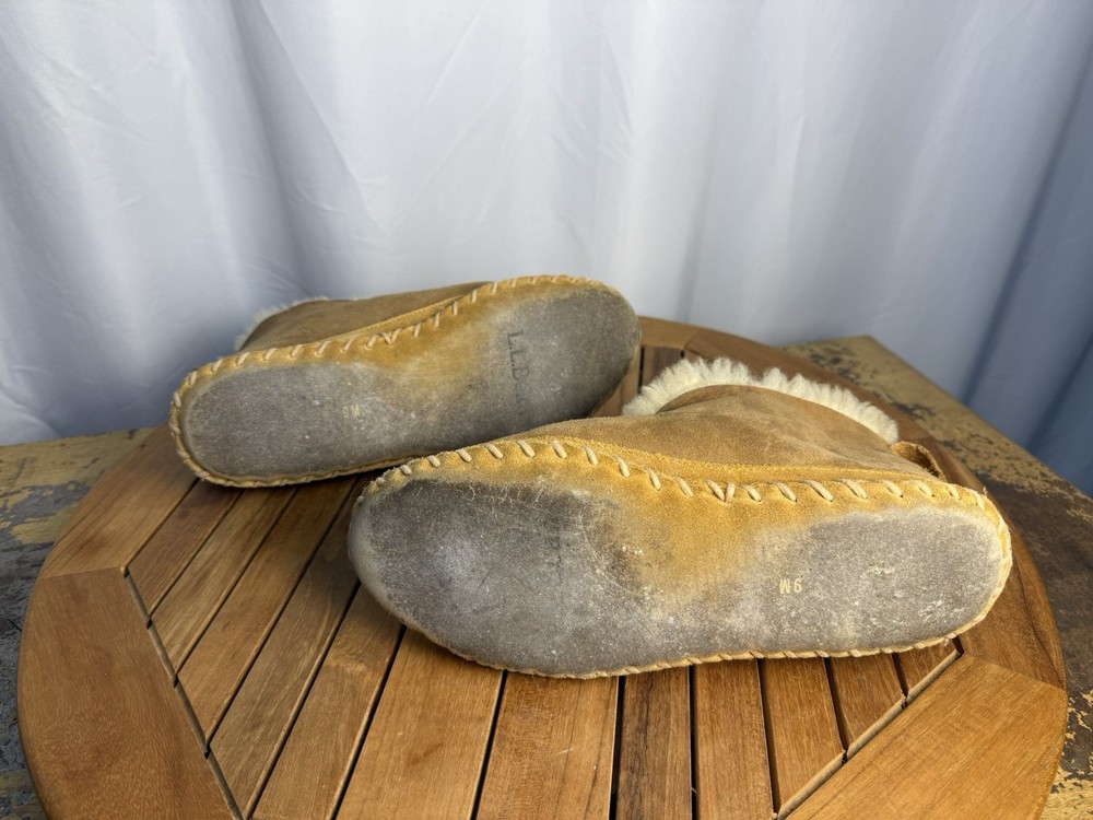Used in good condition. Please look at the pictures and ask any questions before purchasing. No original box. The LL Bean Wicked Good Women's Shearling Suede Slippers in size 9M are a stylish and comfortable choice for women looking for a cozy slipper option. Made with high-quality shearling fabric and suede upper material, these slippers provide warmth and durability. The tan color and bootie style make them versatile for everyday wear, while the L.L. Bean brand ensures a reliable and timeless addition to any wardrobe.