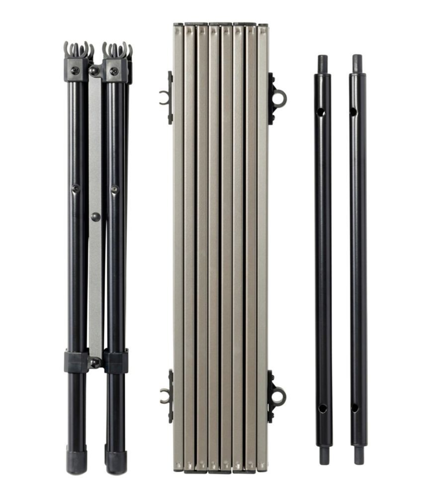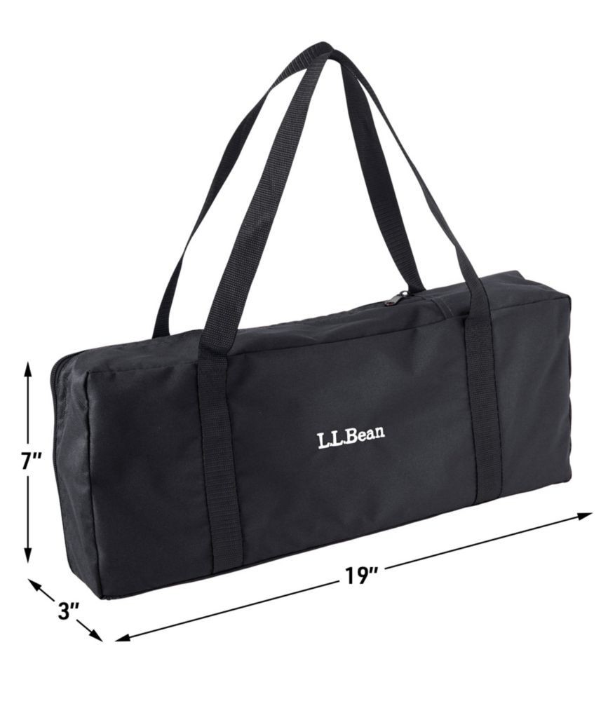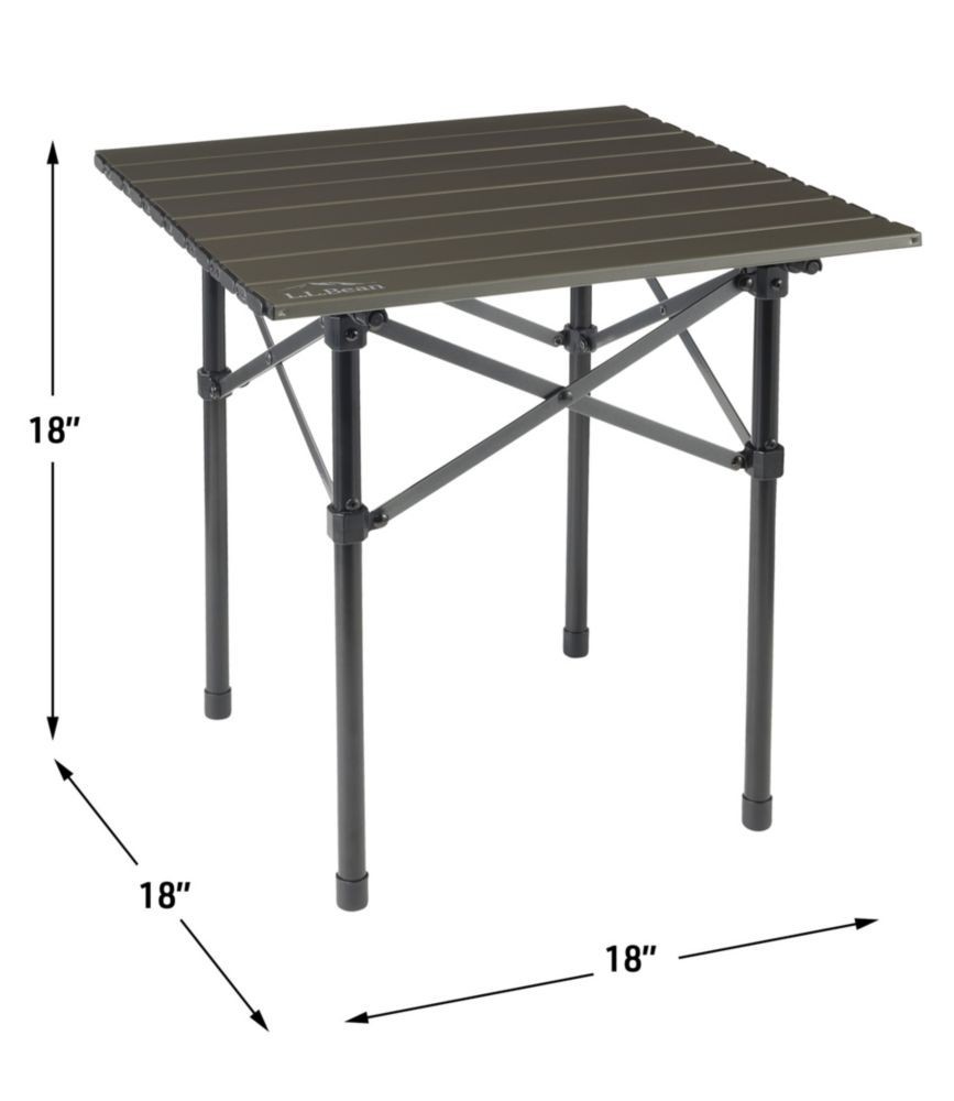 Folded Dimensions:19"L x 5"W x 4"HItem Width:18 inBrand:L.L.BeanWeight Capacity:60 lbSuitable For:CampingCalifornia Prop 65 Warning:This product can expose you to chemicals (Di(2-ethylhexyl)phthalate (DEHP)) which are known to the State of California to cause cancer and/or birth defects or other reproductive harm. For more information, visit www.P65Warnings.ca.govSet Includes:TableSeat Material:PlasticTabletop Material:AluminumFrame Material:AluminumItem Height:18 inItem Length:18 inColor:Dark GraphiteFeatures:Lightweight, Portable, Folding, With Carry BagType:Camping Table