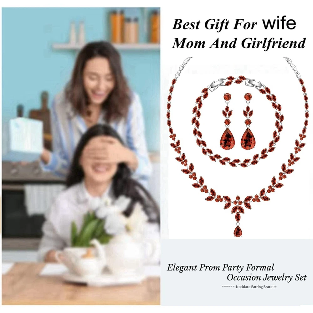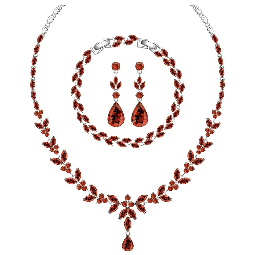 LMXXVJ Wedding Bride Silver Jewelry Set for Women,Prom Formal Costume White Cubic Zirconia Necklace Earring Bracelet Set Product Details Color: White Gold-Garnet Red Metal Type: white gold plated brass Brand: LMXXVJ UPC: 797725871212 EAN: 0797725871212 MPN: Does not apply Department : womens Date First Available : April 7, 2024 Brand, Seller, or Collection Name: LMXXVJ Metal: white gold plated brass Material: Copper Gem Type: Created Garnet Setting: Prong Setting Clasp: Lobster Clasp Number of stones: 3