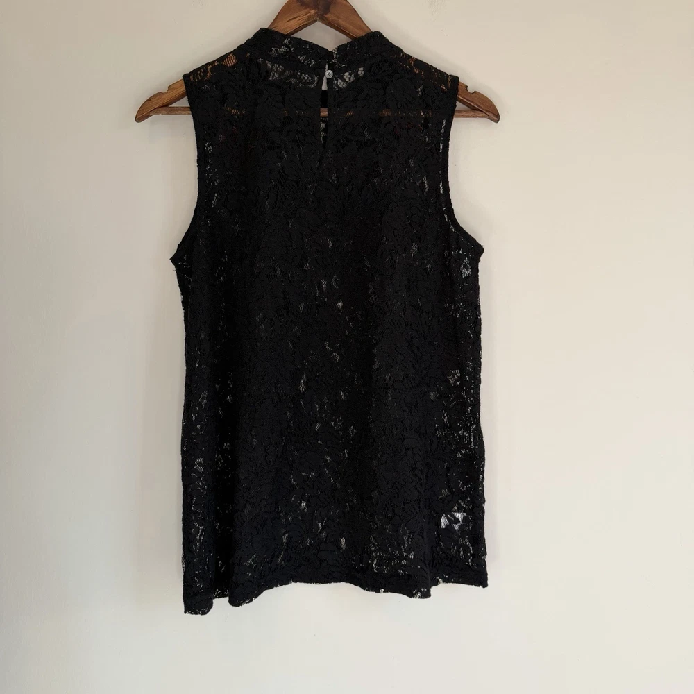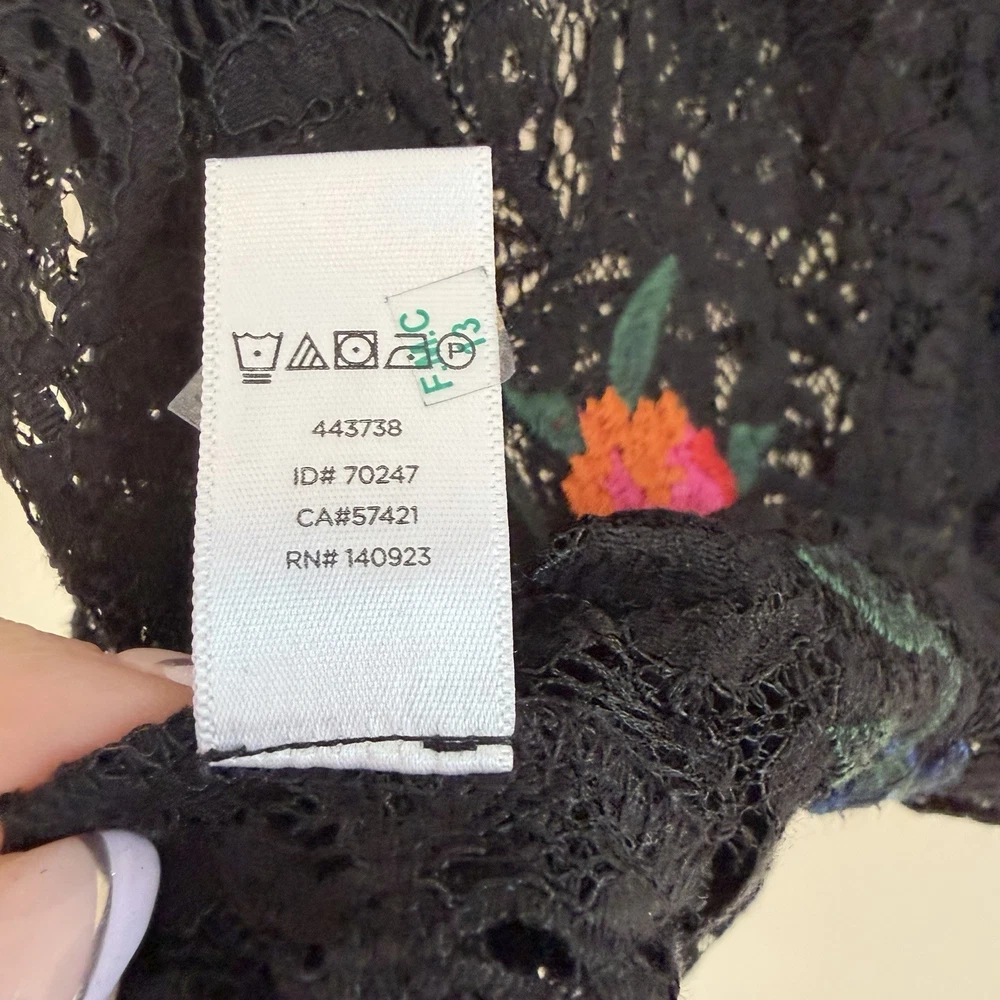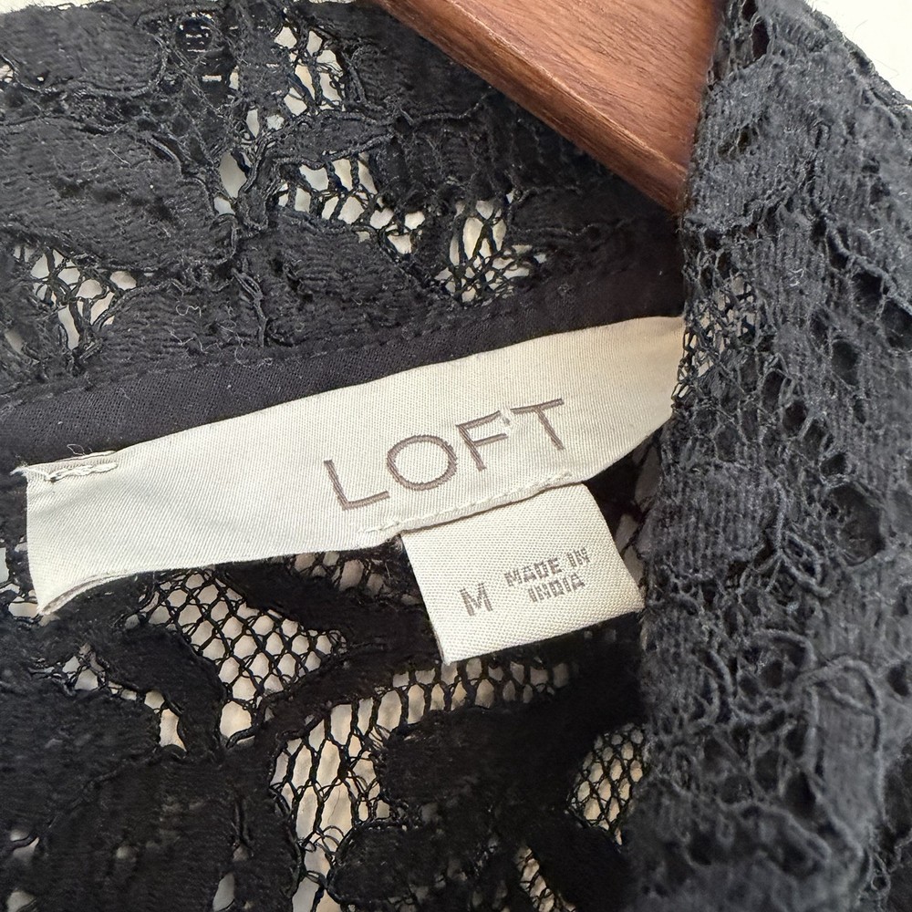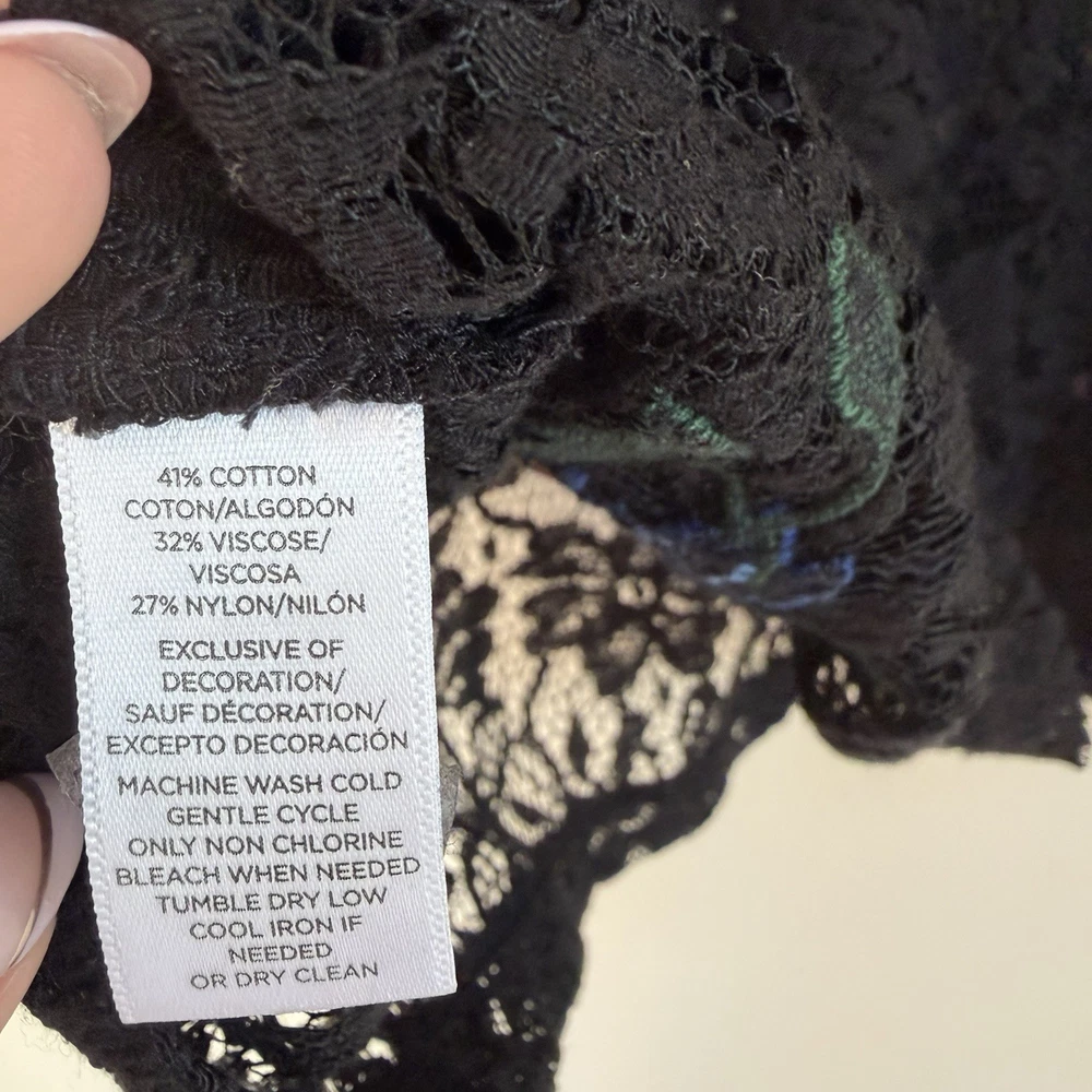 Beautiful LOFT black lace sleeveless top featuring colorful floral embroidery throughout. Sheer lace overlay with mock neckline and flowy silhouette. Perfect for layering or styling boho chic year-round. Measurements: Pit to Pit: 18.5" Length: 26" boho top, embroidered floral, black lace blouse, sheer lace top, cottagecore, romantic style, festival outfit, sleeveless blouse, layered look, feminine chic, boutique style, LOFT blouse, floral embroidery top