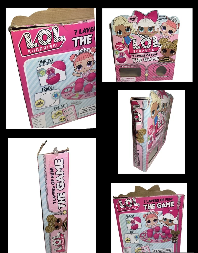 LOL Surprise 7 Layers Of Fun The Game * Game is complete This board game contains: - 1 Game board - 1 Spinner - 7 Surprise Balls - 4 Accessories - 4 Movers - 4 Mover Stands - 28 Tokens - 4 Collector’s Cards - 1 Instruction Sheet * The box has shelf wear some tearing & dents. The game itself is in like new condition. Please let me know if you have any questions. Thank you Personal notes: (pink 4)