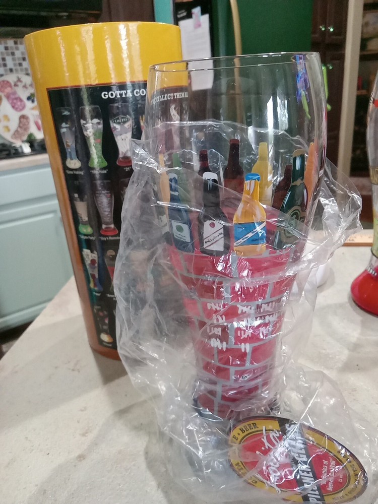 Add some personality to your drinking game with this 22oz Lolita Beer Pilsner Glass! Hand-painted with a fun "99 Bottles of Beer On the Wall" theme, this glass is perfect for all occasions. Made of high-quality glass material, it will make your beer-drinking experience even more enjoyable. The colorful and contemporary design of this glass is perfect for any beer enthusiast. With its unique shape and pattern, it's sure to impress your guests and add a fun touch to your home bar. Hand wash only to keep it looking its best. New In Presentation box.