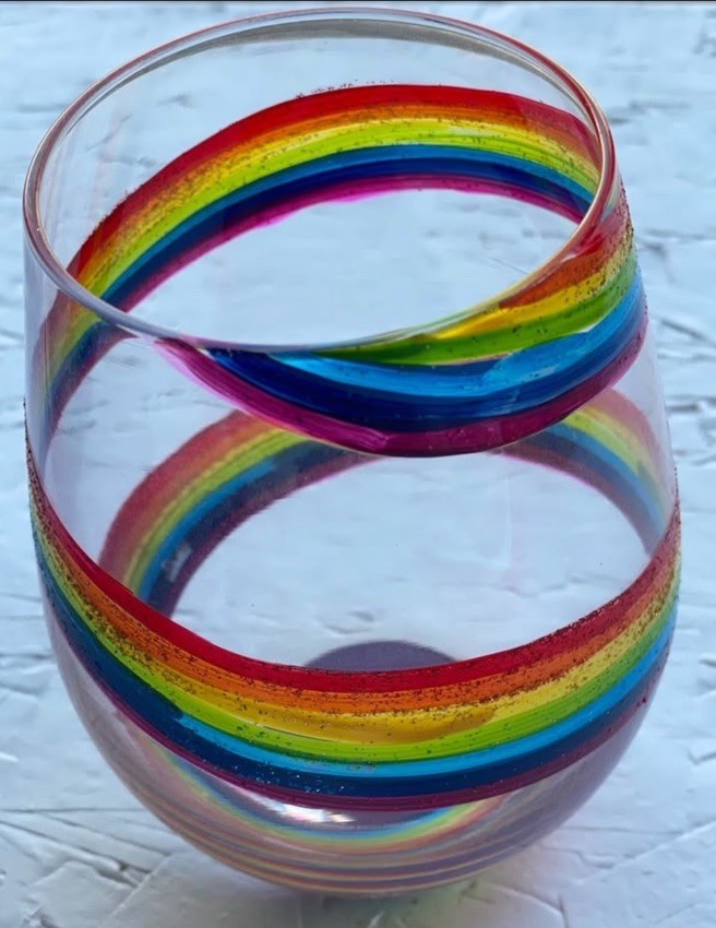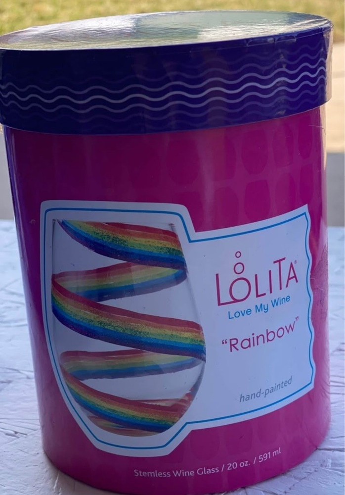LOLITA Stemless Rainbow Wine Glass 20 oz Hand Painted by Enesco with Box