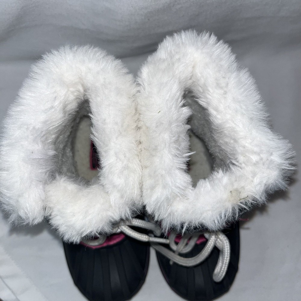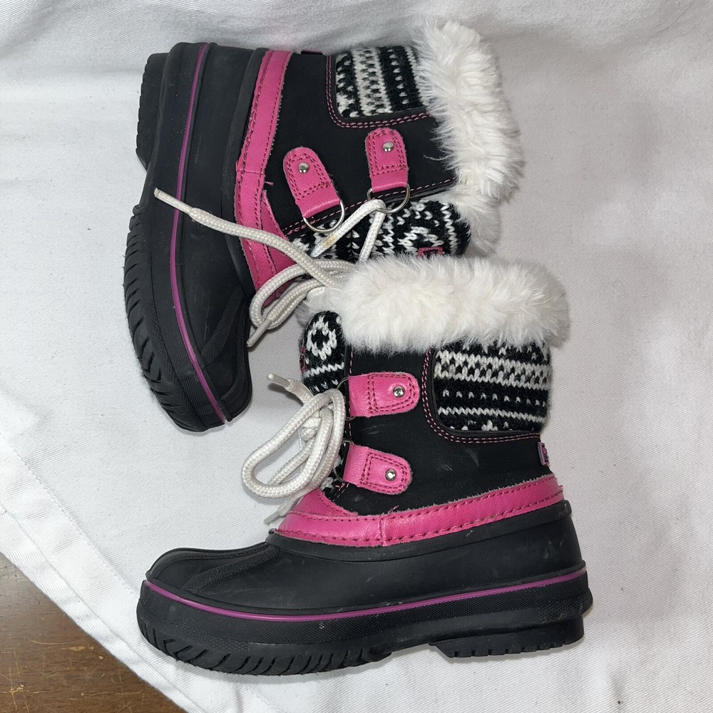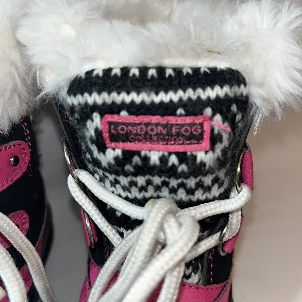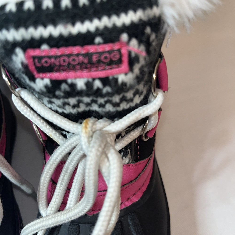 LONDON FOG Lil Tottenham Winter Snow Boots Size 9 Girls Pink Black with White Fleece Lining. Slight wear on sole and small stain on one lace. See photos for details.