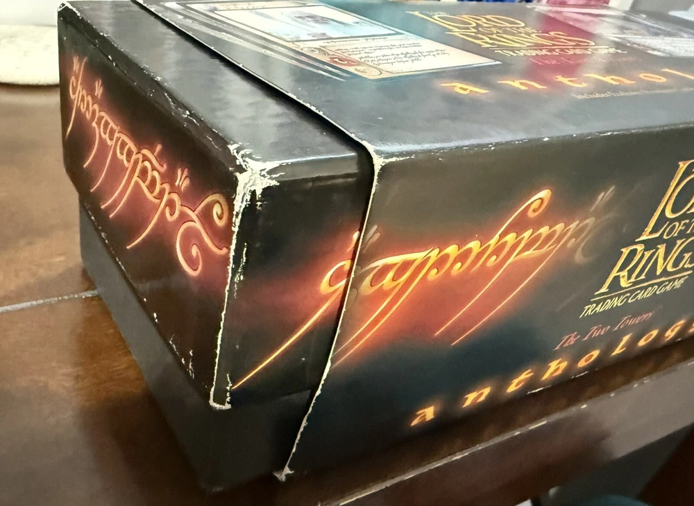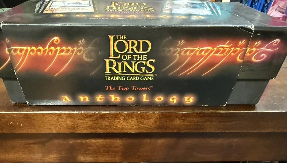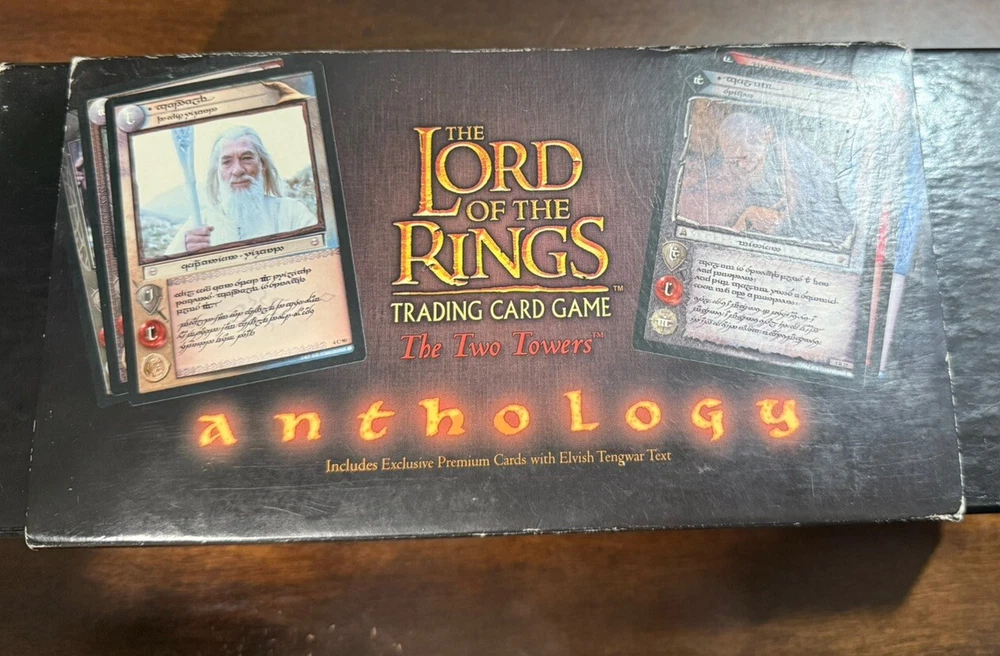 Immerse yourself in the world of Middle-earth with the Lord of the Rings Trading Card Game - The Two Towers Anthology. This set features a variety of multi-color cards featuring characters from the iconic fantasy universe. Whether you're a seasoned collector or a new fan of the series, this anthology is a must-have for any Lord of the Rings enthusiast. The cards are perfect for use in the popular trading card game, or for display in a collector's binder. The detailed artwork and intricate designs on each card capture the essence of the characters and the world they inhabit. Add this set to your collection today and embark on an epic journey through the lands of hobbits, elves, and men. Box has imperfections, see photos. Cards have all been opened previously.