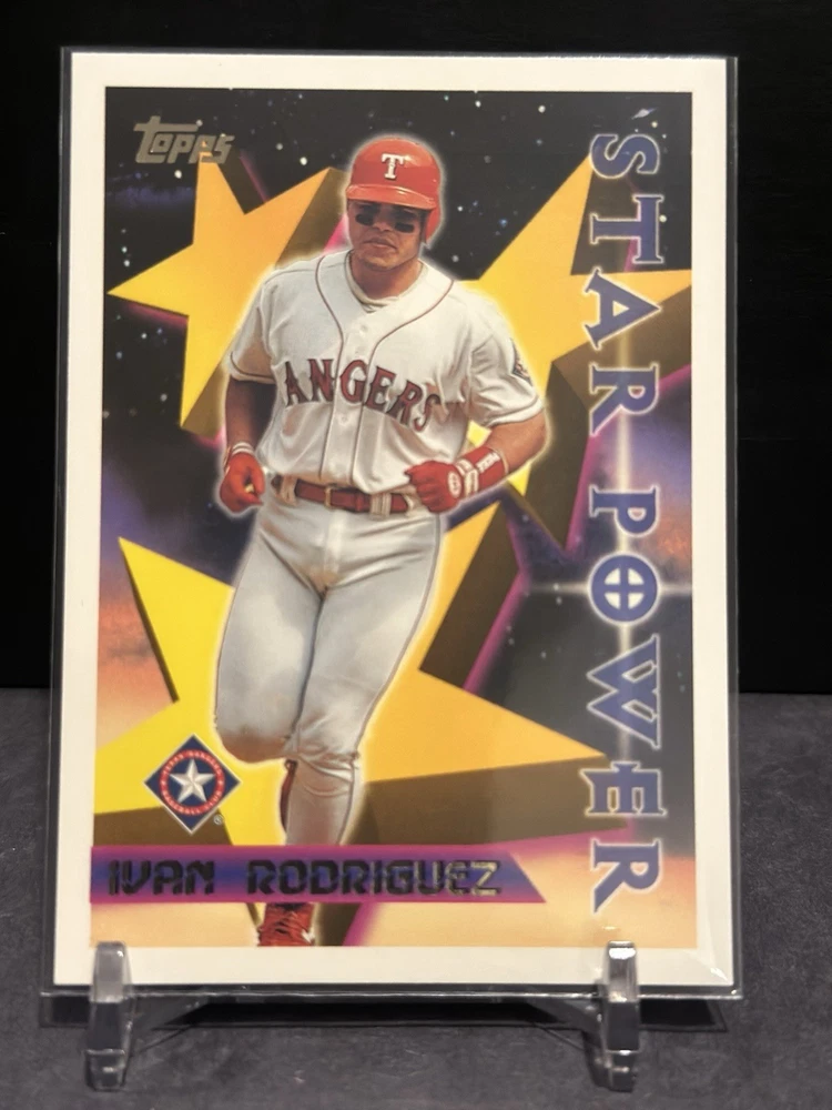 The product is a set of 1996 Topps baseball trading cards featuring star players such as Ken Griffey Jr, Frank Thomas, and Ivan Rodriguez. This collection includes 8 cards from the Major League (MLB) and is manufactured by Topps. The cards showcase players from the 1996 season, making them a valuable addition to any sports trading card collection. Collectors can enjoy adding these iconic baseball cards to their own personal collection at once.