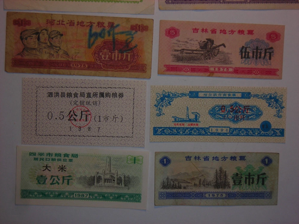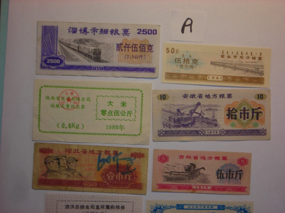 LOT FOREIGN PAPER MONEY CHINA FOOD RATION COUPON 2500,50,5,10,1 BILLS 10 PC LOT
