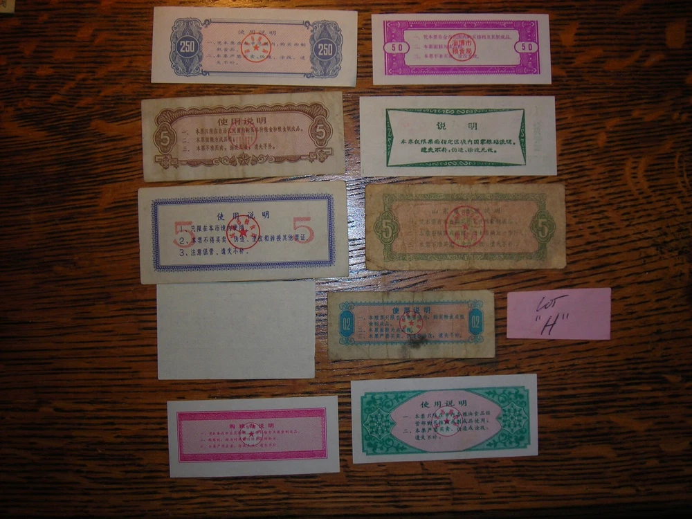 LOT FOREIGN PAPER MONEY CHINA FOOD RATION COUPON 250,50,10,3,2,1 BILLS 10 PC LOT