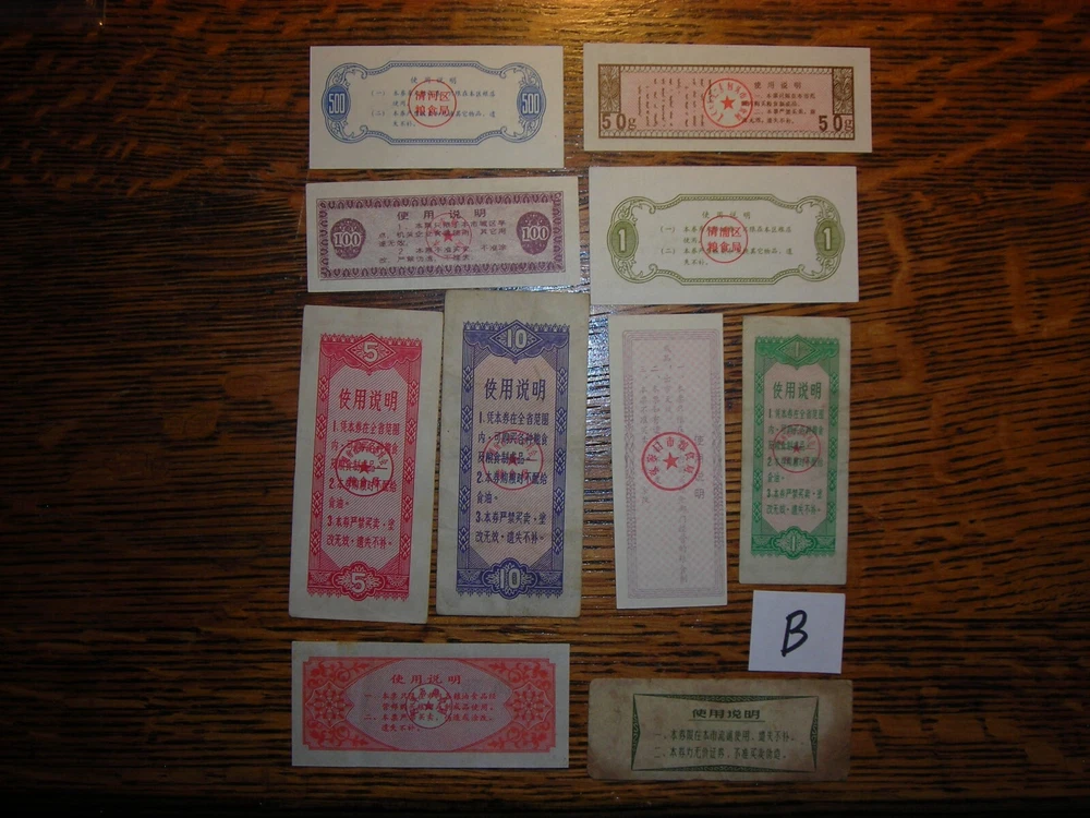 LOT FOREIGN PAPER MONEY CHINA FOOD RATION COUPON 500,50,100,10,1 BILLS 10 PC LOT