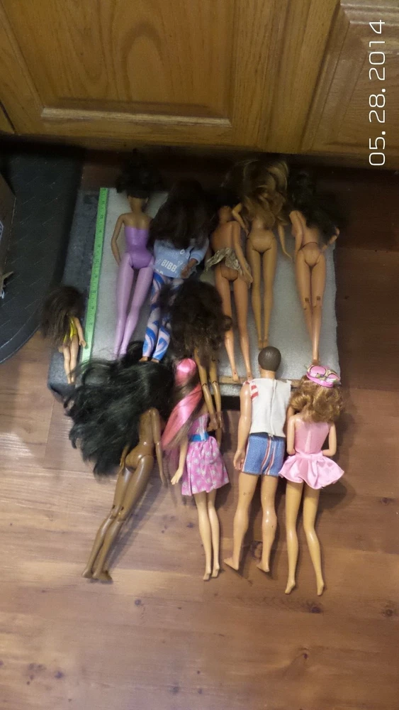 LOT OF 11 Mattel BROWN/BRUNETTE, RED HAIR, AFRICAN AMERICAN Barbie & KEN DOLLS TWO DOLLS ARE SMALLER NOT SURE IF ALL ARE MATTEL ONES SOME ARE VINTAGE OTHERS ARE MORE MODERN SOME ARE MISSING RINGS/EARRINGS SOME WEAR/STAINS ON SOME, I DON'T THINK ANY OF THEM HAD A HAIRCUT THE KEN DOLL HAS SOME TOES CHEWED OFF ON ONE FOOT, AND SOME OF THEIR HAIR MAY NEED TO BE WASHED/CONDITIONED I DO COMBINE SHIPPING IN THE SAME WEEK ONLY ANY ?S FEEL FREE TO ASK