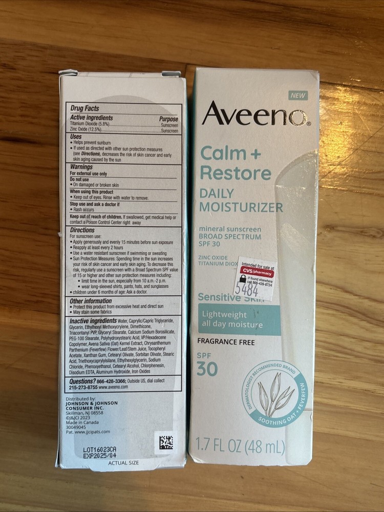 LOT OF 2 Aveeno Calm + Restore SPF 30 Moisturizer 1.7fl oz/48ml Each