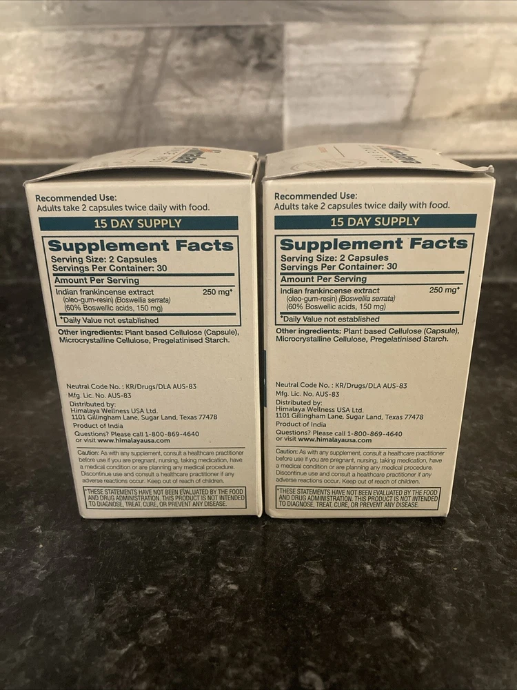 LOT OF 2 Himalaya Boswellia 60 Vegetarian Capsules, Gluten-Free, Exp 06/25